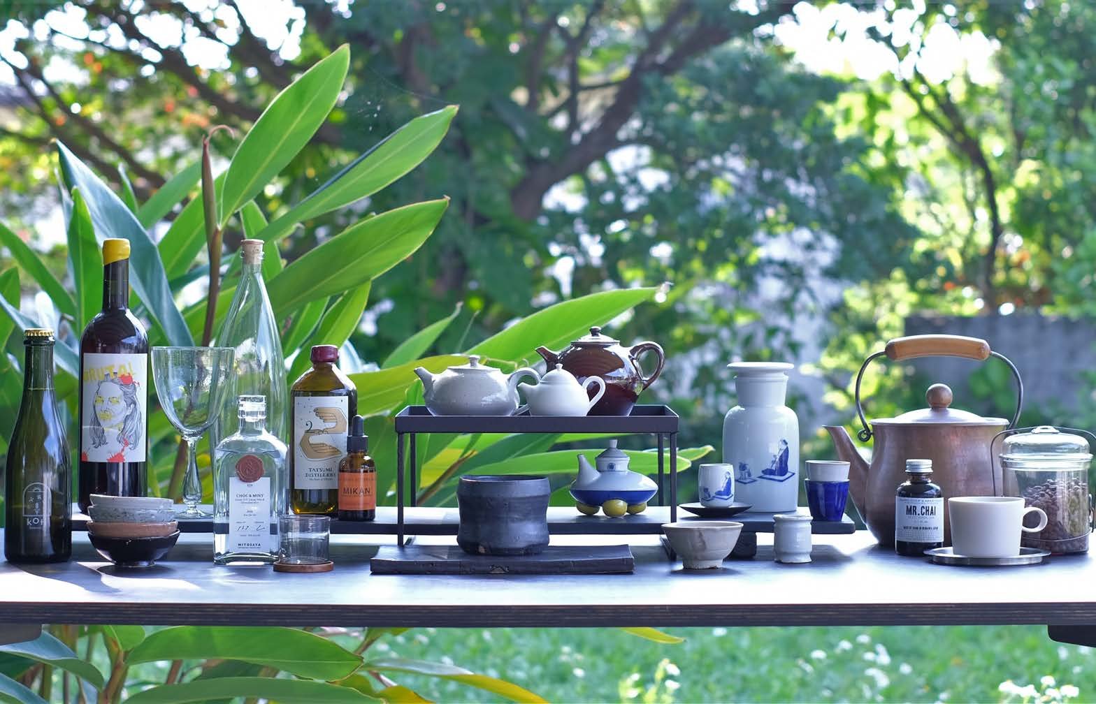 沖縄県那覇市にあるLIQUID THE STOREは、飲むための道具を扱うギャラリーやナチュラルワインを扱うセラー、茶葉や珈琲、日本酒などの飲み物を扱うパントリー、立ち飲みができる飲食エリアなどで構成される「飲む」にまつわる共同売店所。
