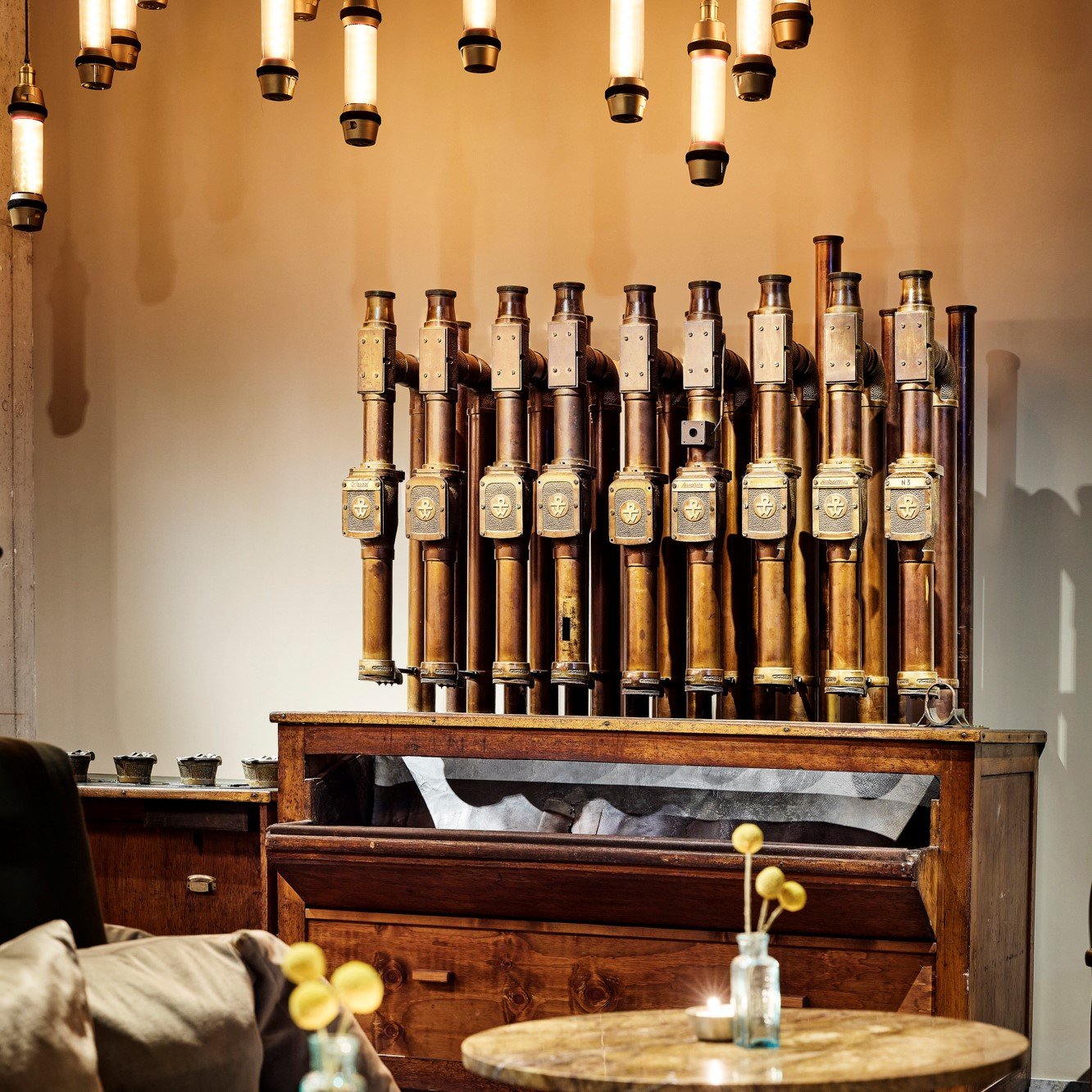 昨年末、その巨大な建築がリノベーションされ、ホテル「テレグラーフェンアムト」として生まれ変わった。パブリックスペースには太いパイプが交差し、気送管を稼働させる機械も残ったまま。武骨でインダストリアルな空間はファッション系イベントでしばしば使われ、連日賑わっている。生まれ変わってもなお人々を“繋ぐ”場所として機能していることに、多くの市民が感慨を覚えている。