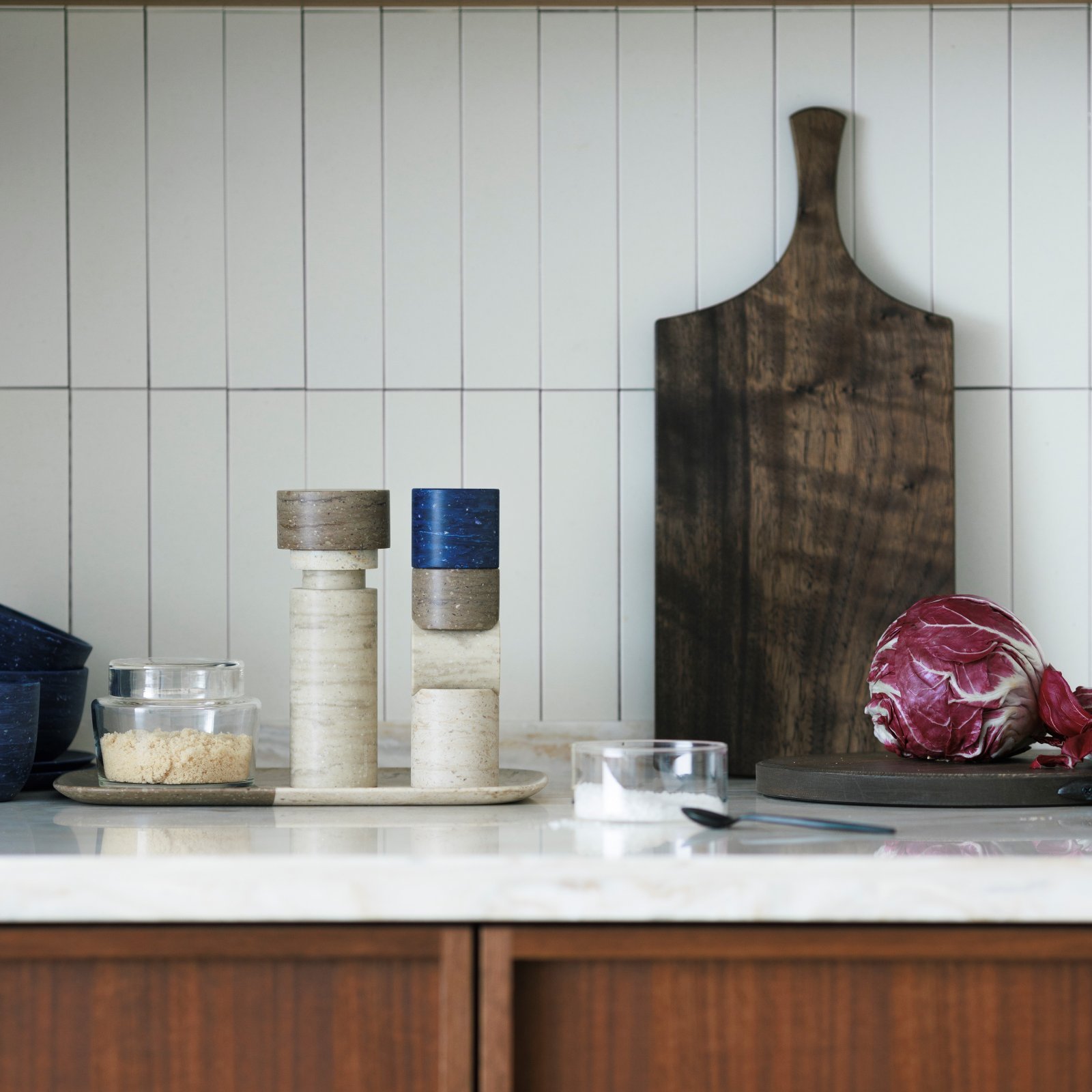 北海道旭川の木工クラフトメーカー、ササキ工芸によって、コーリアン(人工大理石)の端材を使用したプロダクトブランド「スーパーノヴァ」が設立された。コーリアンは内装建材として開発された素材で、テーブルやカウンターなどさまざまな場所で使われている。耐熱性、耐摩耗性を備えているため傷がつきにくく、液体などがしみ込むこともない。ただ、大判の板材として単一の規格サイズで販売しており、端材が多く出る。そこに注目したササキ工芸が木材の加工技術を使い、新プロダクトを開発するに至った。デザインはプロダクトデザイナーの倉本仁。端材なので色はすべて微妙に違う。お気に入りの組み合わせを探してみては。
