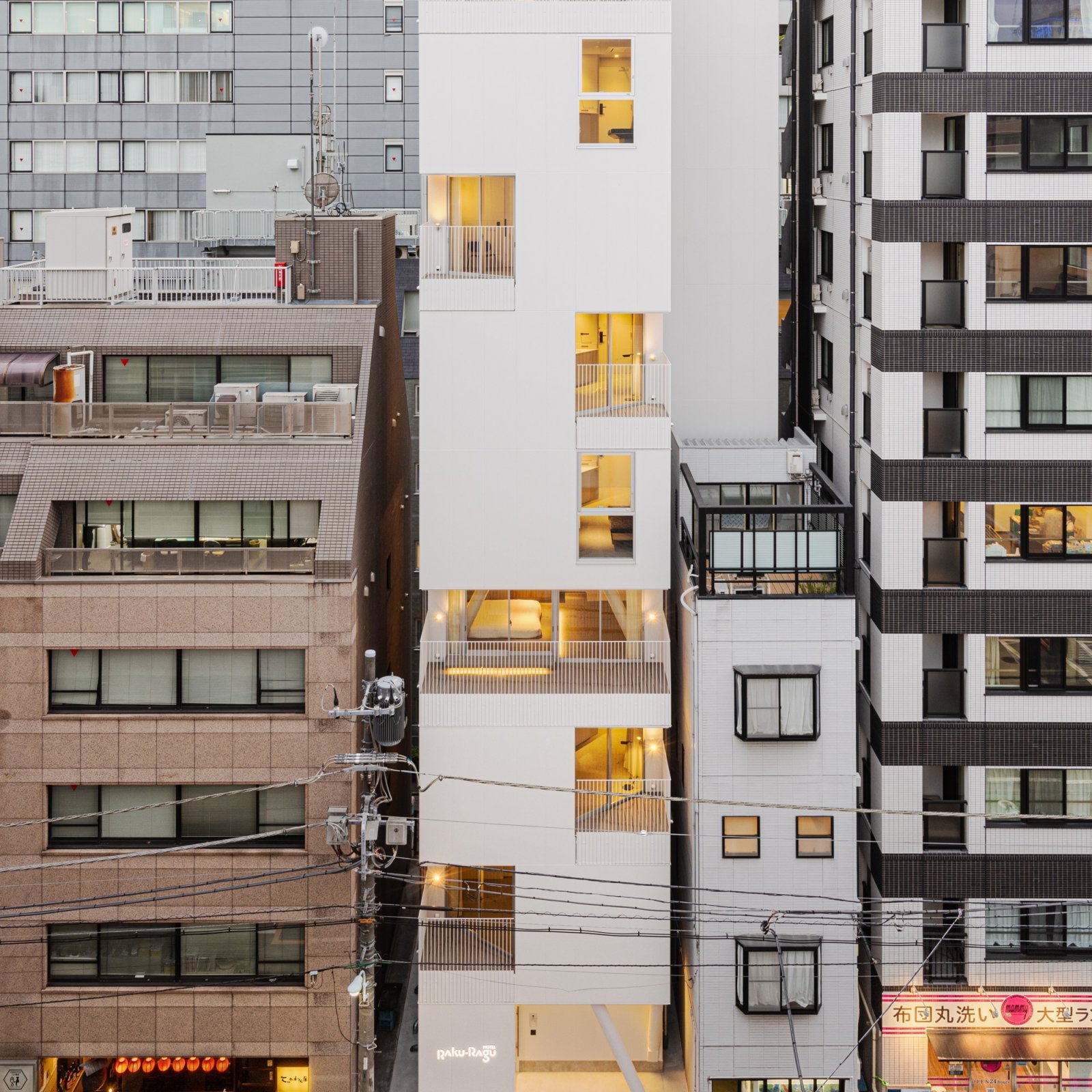 コロナ禍を経て、日本各地で再びホテルの開業ラッシュが続いている。今年8月には、ビル群が立ち並ぶ東京・日本橋エリアに、地上9階建ての「ホテル ラクラグ」がオープンする。わずか25坪ほどの狭小地に、スイートルームからツインルームまで全14室を設けた都市型ホテルだ。