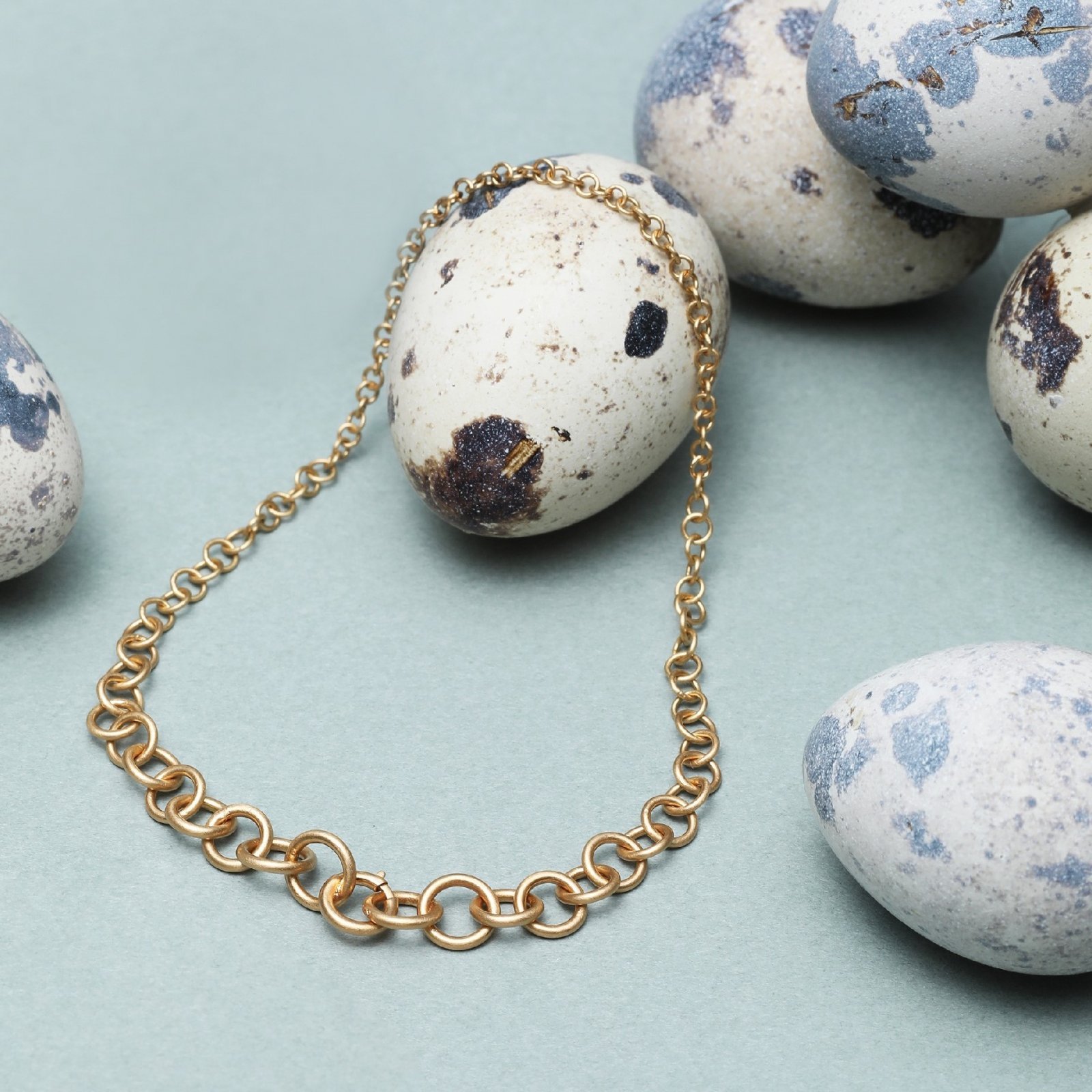 控えめなエレガンス漂うジュエリーブランドとして知られるハム。ゴールドの素材には再生金属である「リファインメタル」を使用。チェーンの一つひとつの駒を職人の手作業で磨き上げることで、繊細でやわらかな表情と快適な着け心地を実現した。