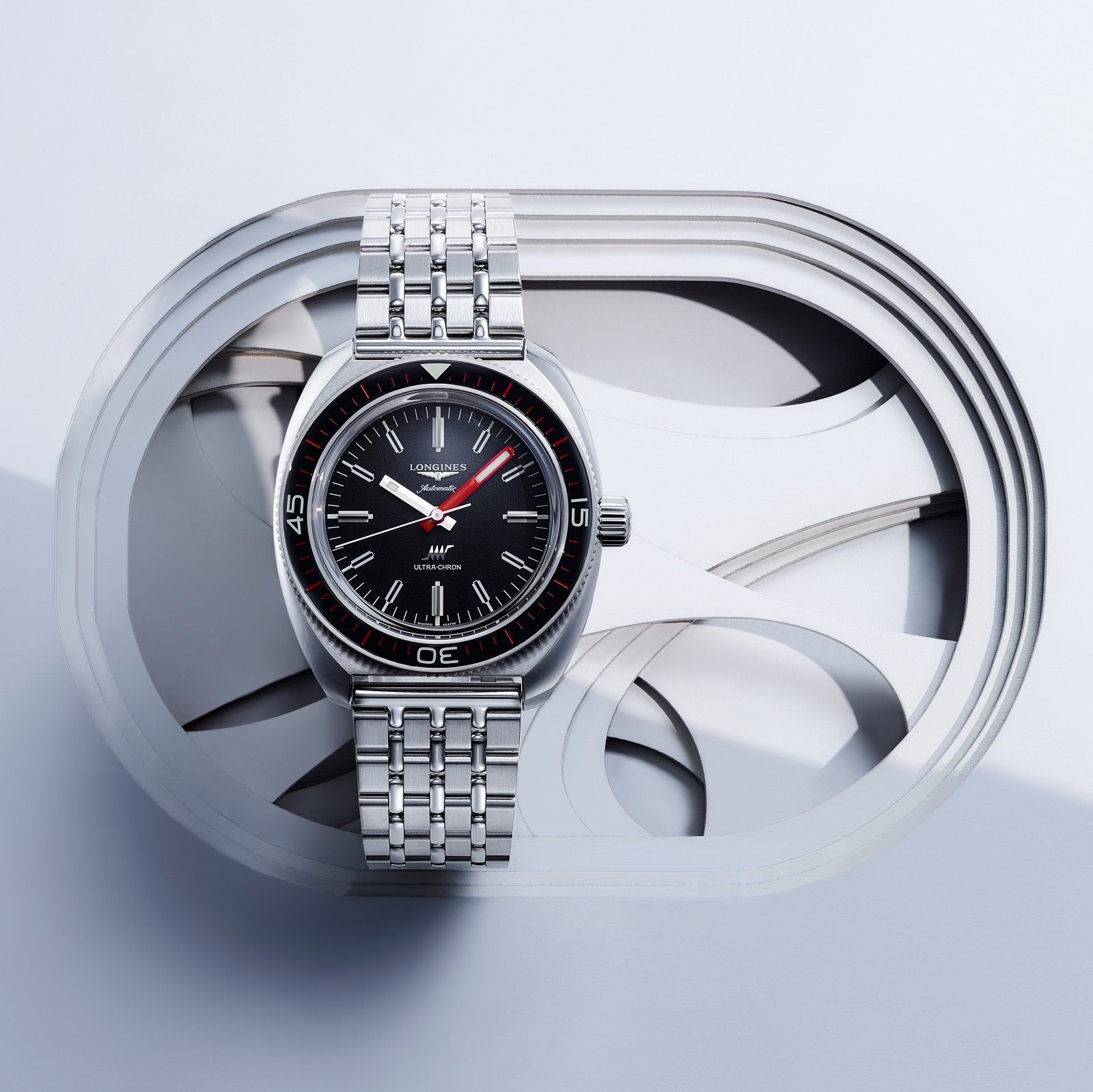 1968年に発表された「ロンジン ウルトラ-クロン ダイバー」にインスピレーションを得た、スポーティモデル。ブランド創業190周年に、最先端の技術とともに復刻された。外装のスタイルだけでなく、高振動周波数ムーブメント搭載機として名を馳せたオリジナル同様に毎秒10振動のムーブメントで再武装。シリコン製ヒゲゼンマイを装備し、防水性もより高めた。