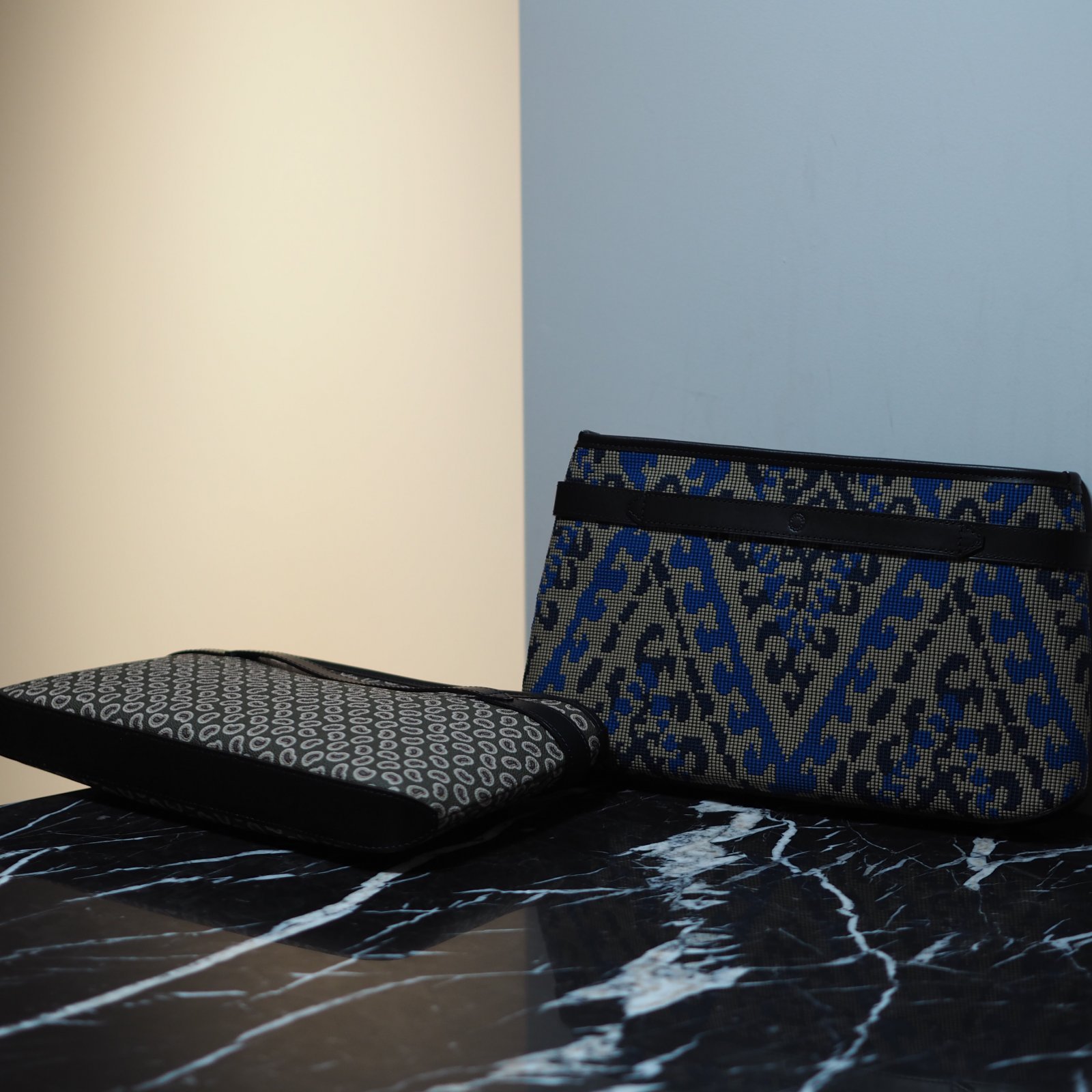 廃棄から再生へ、そんな世界的なトレンドに新たなプロダクトが加わった。高品質な革製品で定評のあるガンゾの職人が、イタリアの大手生地メーカーから譲り受けた「余った生地」を使い、クラッチバッグをリメイクするサービスが始まったのだ。生地はその時店舗にあるものから選び、革部分はイタリア・ワルピエ社のブッテーロ(貴重な牛の肩の革)の黒、茶、ネイビーから、さらに金具もシルバー、ゴールドから指定できる。熟練の職人が一点一点手作業で製作してくれる。生地のデザインは織物やインクジェットなど、その時によってさまざま。一期一会の出合いから、まさに一点もののオリジナルバッグをつくれるのが魅力だ。