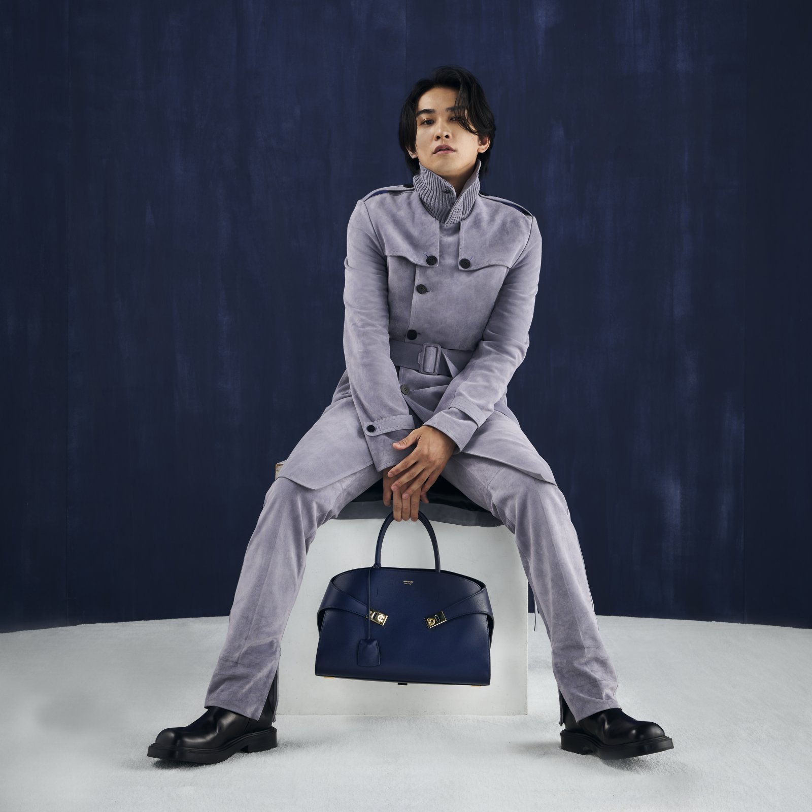 2店舗での同時開催となる今回のポップアップストアでは、昨シーズンからクリエイティブ・ディレクターを務めるマクシミリアン・デイヴィスによる、「Cinema」をテーマにしたFW23コレクションのアイテムが勢揃い。中でも注目のアイテム、フェラガモの新アイコン「ハグ」バッグは、その名の通り、抱きしめるように配された“ガンチーニ”のバックルが愛嬌たっぷり。俳優の町田啓太や女優・モデルの三吉彩花など、セレブたちも「ハグ」バッグを持ったルックを披露した。