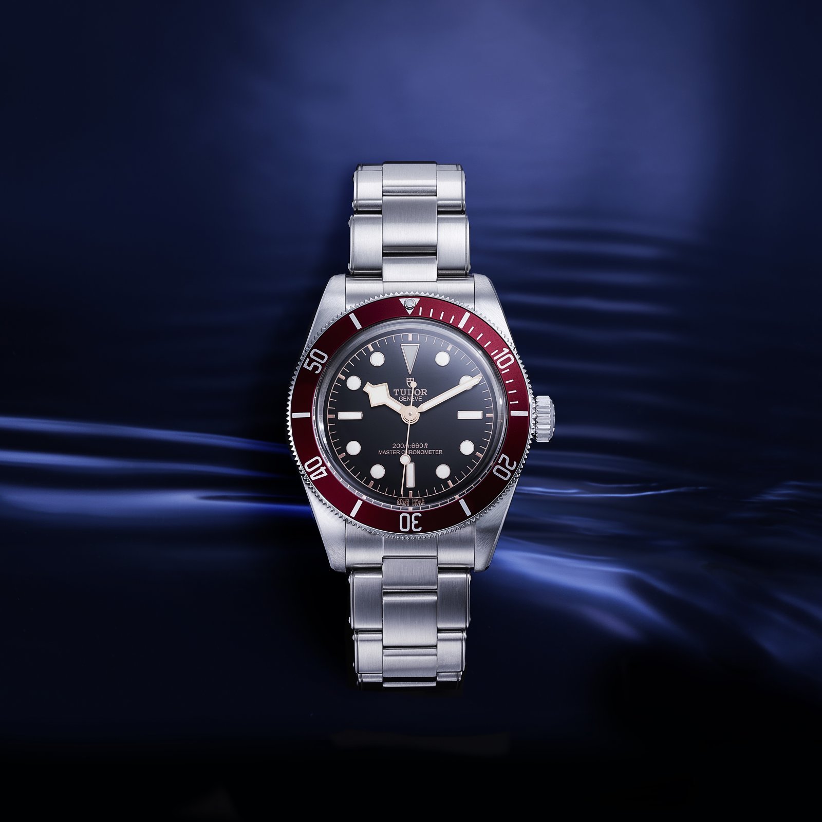 バーガンディカラーのアルマイト加工ディスクをはめた細身の回転ベゼル、ドーム型のダイヤルとサファイアクリスタル風防がレトロな雰囲気を醸す。リューズにはオールドファンにお馴染みのチューダーローズをレリーフした。一方で、搭載される自社製造のキャリバー「MT5602-U」はCOSC認定クロノメーターであり、かつケーシング後にMETAS認証を受けたマスター クロノメーターだ。