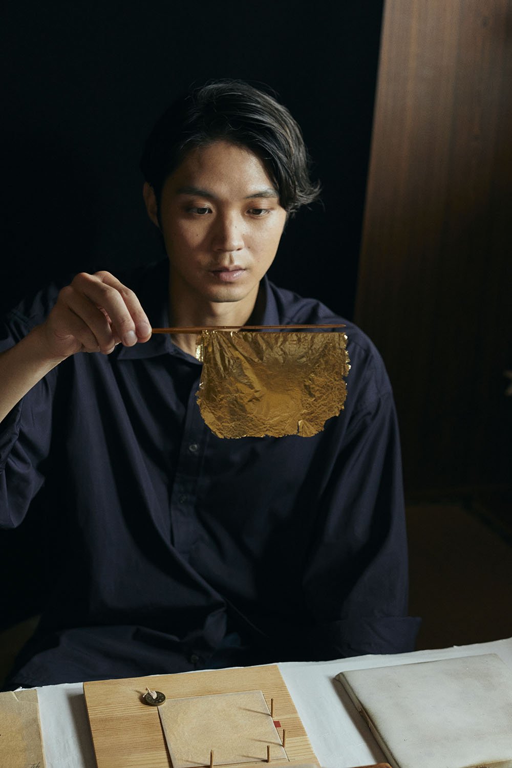 薄さ1万分の1㎜の金箔を竹箸ですくいあげる磯村勇斗の目は真剣そのものだった。わずかな息遣いでも吹き飛んでしまうほどの薄さに仕上げる「縁付金箔」の技法を受け継ぐ職人は、金箔の街・金沢でもわずかしかいない。