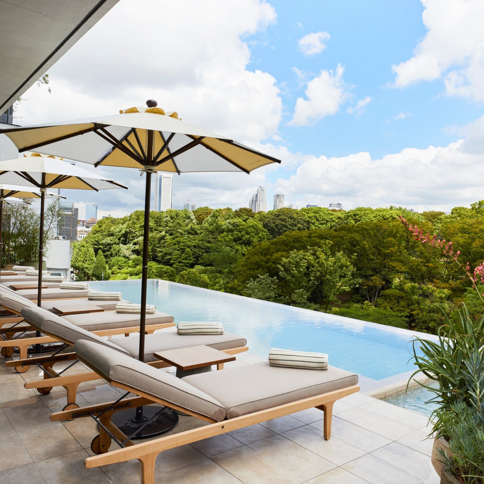 日本のブティックホテルのパイオニア、トランクホテルの新たな宿泊施設が東京・奥渋に誕生。設計・インテリアを手がけた芦沢啓治に加え、ノーム・アーキテクツも協業し、都会にいながら寛ぎと刺激を提供する「アーバン リチャージ」がコンセプトに。特徴はトランクホテルの念願だったというルーフトッププールと、それと隣り合うオイスターバーが併設されたラウンジ。宿泊者なら誰でも利用可能で、牡蠣など6種類ほどの海の幸が味わえる極上空間。遠くに出かけずとも、至福のホカンス体験が待っている。