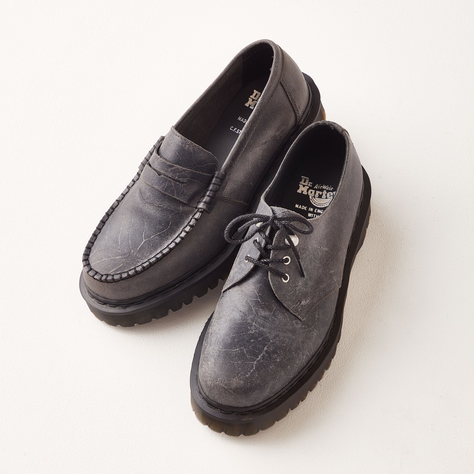 今回紹介するのは、「1461」のモデル名で知られる3アイレットのオックスフォードタイプ。「8ホールブーツ」の生産開始から1年後の1961年4月1日に製造が開始したので、「1461」というモデル名が付けられた。「8ホールブーツ」と同じ素材が使われ、そのシンプルなデザインから合わせるものを選ばない。しかしながらソールに入った黄色のステッチでドクターマーチンの靴と一眼で判別できる。しかもここで紹介するモデルは「1461」が生まれたノーサンプトンの工場で製造されたもので、オリジナルのデザインが忠実に再現されている。ドクターマーチンの歴史を知る靴と言っても過言ではない。