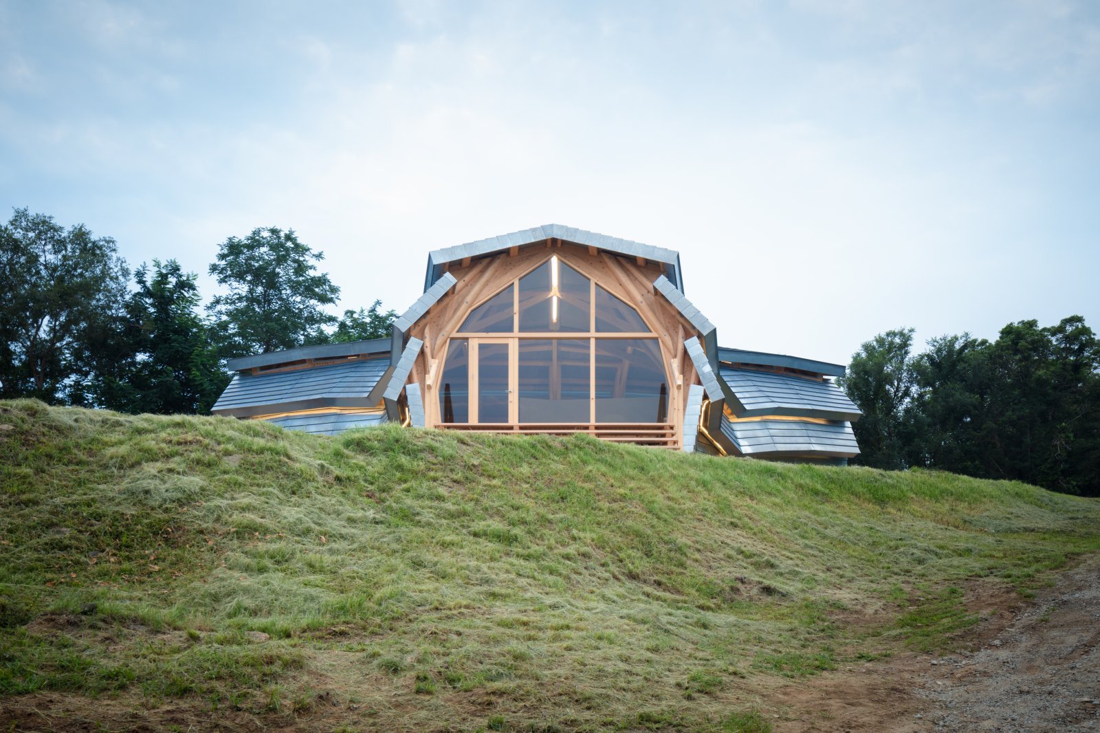 構造体には地元のヒノキ材を活用。施主自ら森から調達し、ヴィルドが導入販売するCNC木造加工機で加工、さらに乾燥までを現地で行い、ヴィルド監修のもとで施工に参加した。同じく建物を支える基礎も地元産の石を用いるなど、地産地消による建築づくりで環境への負荷を低減。離島における最先端技術を活用したプロジェクトが、新たな建築の可能性を示唆している。