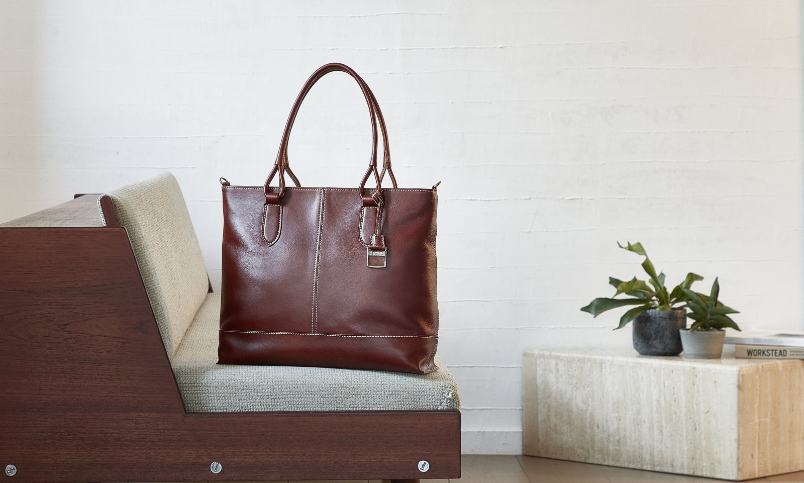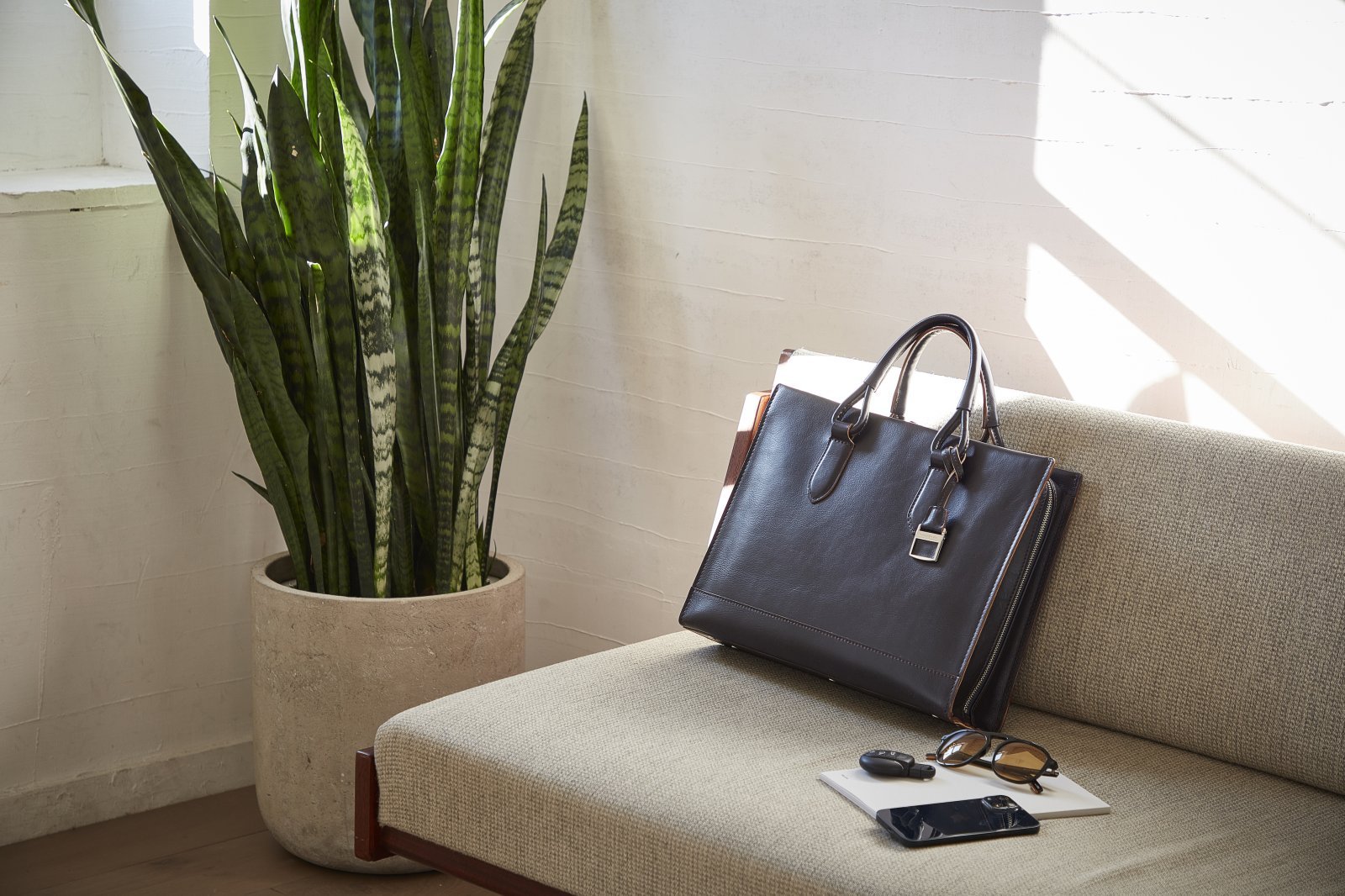 かつてカジュアルスタイルを代表したトートバッグも、ビジネスの場で使う人が増えている。だが服装の自由度が高い時代だからこそ、そのチョイスがもつ人の印象を大きく左右する。ビジネスバッグであれば、レザートートを。しかも上質で品格のあるアイテムを選びたい。「ブルック」のトートバッグはそれらの条件を十二分に満たしている。素材はブリーフケース同様、職人が高度な技を駆使して仕上げた特注レザー。ひとつとして同じ表情がないアンティーク加工は、使い込むほどに味わい深さが増していく。そして正確なピッチを刻むステッチは、専門の職人が一針ずつ丁寧に縫い上げた証し。“HAND MADE IN JAPAN”というこだわりが、ビジネスの場にふさわしい品格をこのバッグに与えている。
