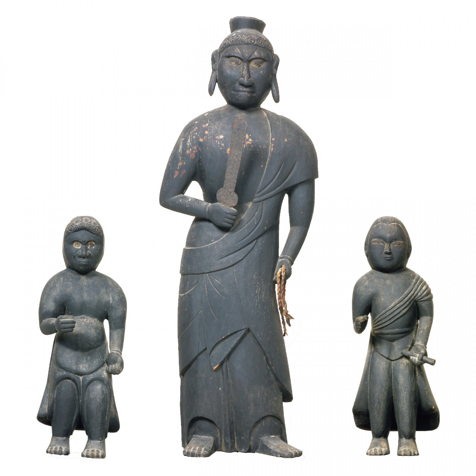 『童子跪坐像(どうじきざぞう)』右衛門四良作、江戸時代、法蓮寺(青森県十和田市)。丸みを帯びた像の底が、前後に揺れる仕掛けになっている。十和田市には、大工・右衛門四良が手がけた武骨でやさしい像が多く残される。