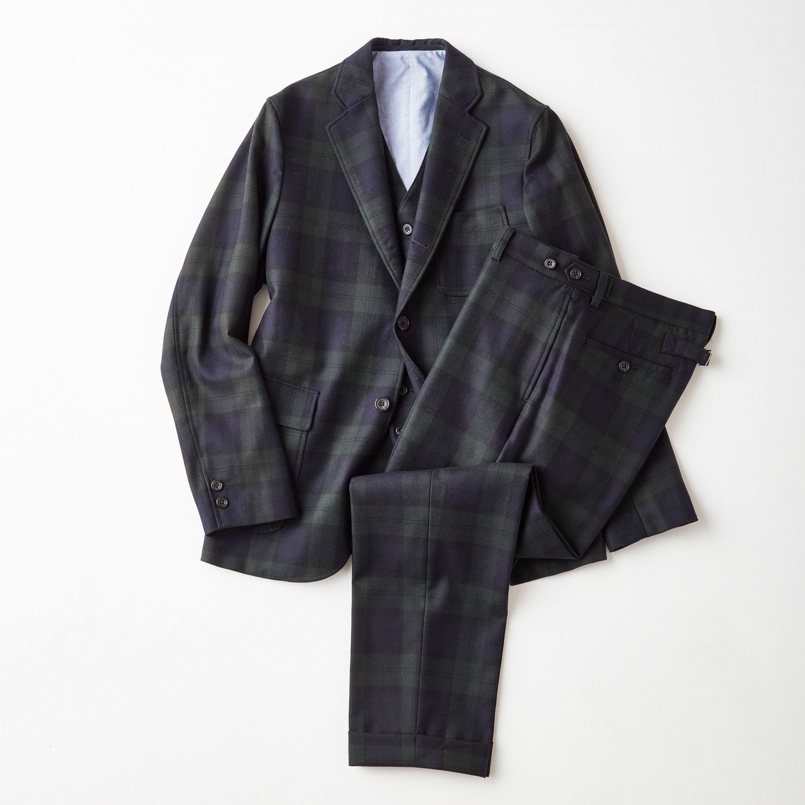 今回紹介するのは、ビームス プラスが製作したジャケット。1960年代のアメリカのスポーツコートをイメージしてデザインされ、トラッドのお手本とも言えるモデルで、「ビームス百名品」にも選ばれているほどの同ショップの自信作だ。ドレスパンツを合わせればビジネスにも使え、カジュアルパンツを合わせても洒落て見える。同じ素材でベストやパンツもリリースされていて、セットアップでも着られる。「ブラックウォッチ」を満喫できるトラッドなジャケットだ。