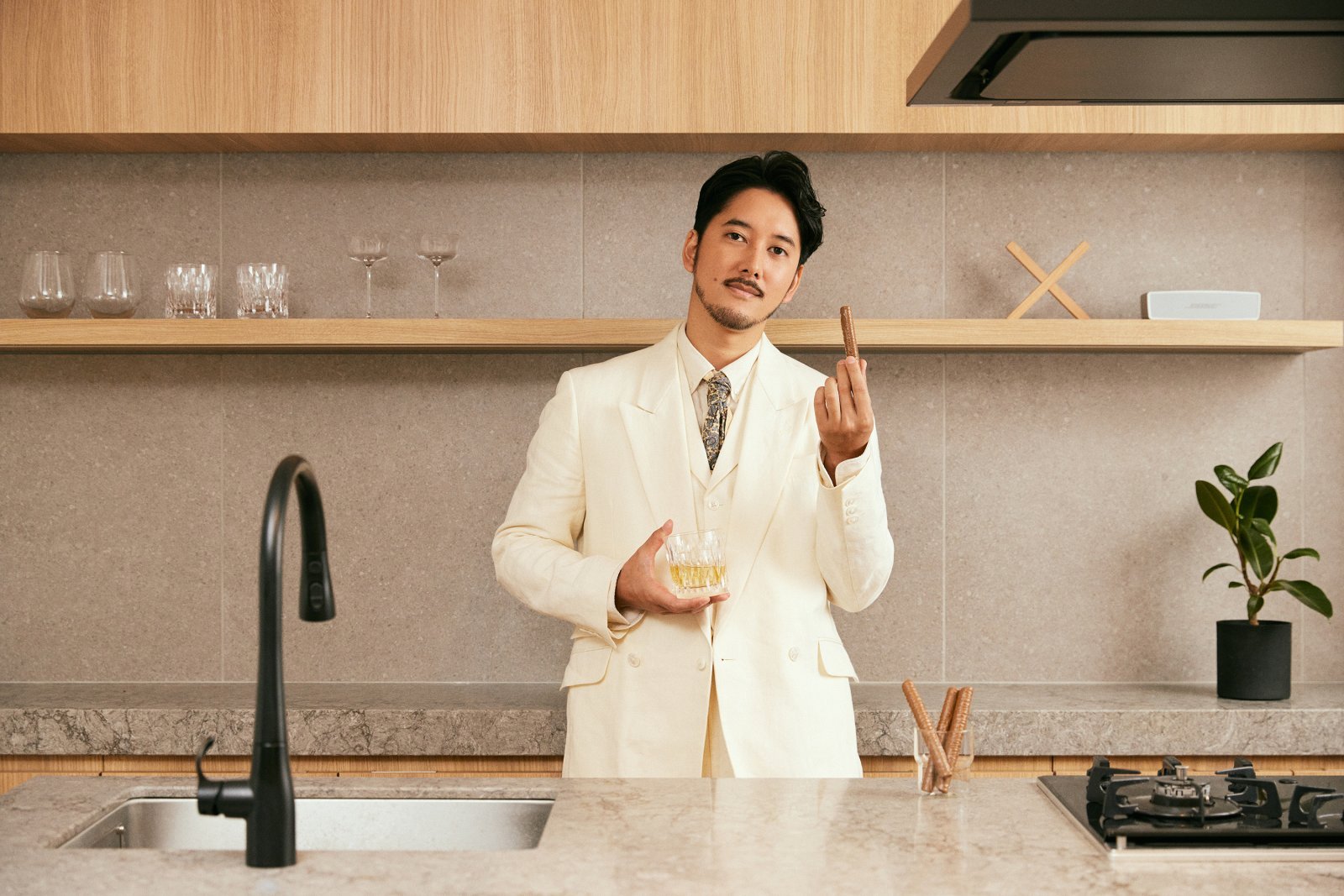 束の間のブレイクタイムにはコーヒーが欠かせないという、コーヒー好きでもある長塚さん。「ショコラ シガールは、こだわって淹れたコーヒーとも合わせたくなる」と話すも、今回、提案してくれたのはウイスキーとのペアリング。
