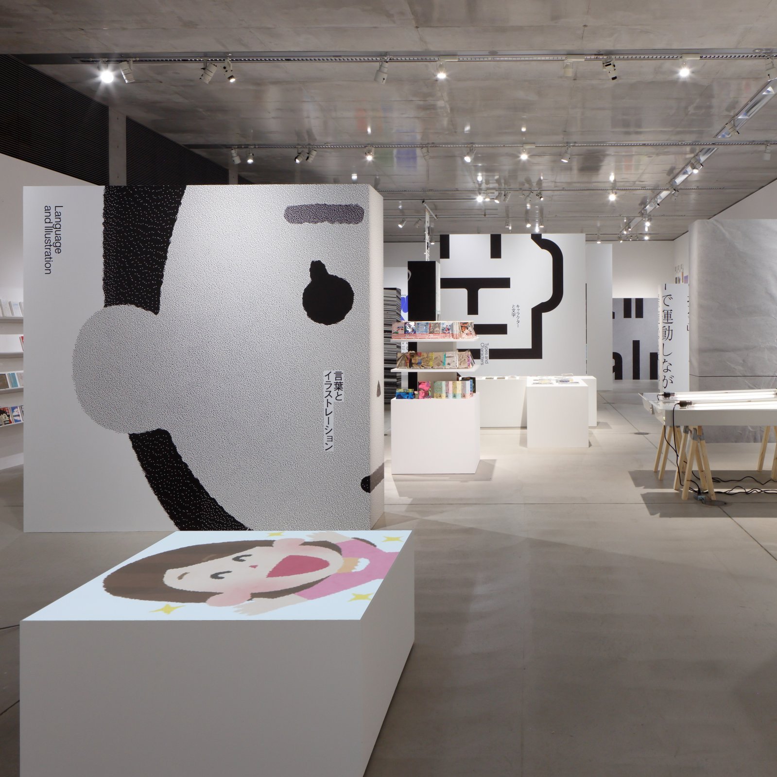 展覧会ディレクターを担う編集者の室賀清徳は開会にあたり、「絵と文字が接近している文化や、振り仮名によって多義的な表現を行う文化が日本語にはある。そういった背景を大きく捉えてスターティングポイントとした」と話した。同じくディレクターを務めたのは、グラフィックの研究を行う後藤哲也とデザイナーの加藤賢策。90年代以降、コンピューターでデザインすることが当たり前になった彼らによる、等身大の視点で切り取ったグラフィックの事例そのものが興味深い。会場は、書籍のイメージと13のテーマへの扉がリンクした構成になっており、ビジュアルコミュニケーションの魅力を再発見できるに違いない。