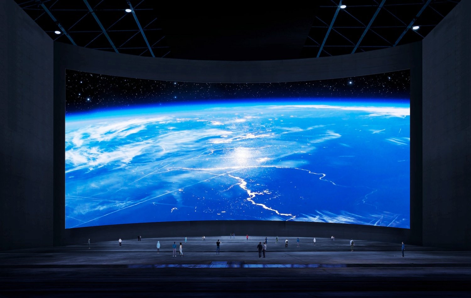 また、写真・動画・VRで「地球を見る」体験装置としてWEパビリオンを構築。撮影した映像を映し出すディスプレイは横幅100メートルの超大型で、3メートルの距離でディスプレイを見ると、400キロメートル上空のISSから地球を見たときの体験とほぼ同じ視覚体験となる計算だ。後方に移動すれば地球の全貌が見えてくるように設計するという。