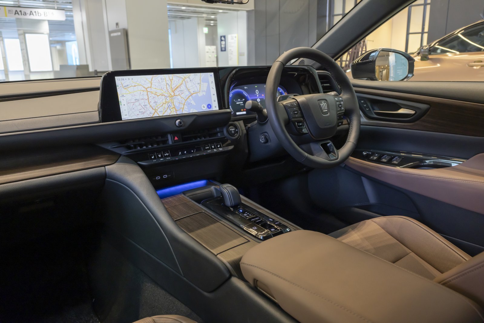 クラウン FCEVに乗り込みまず感じたのは、インテリアの上質さだ。派手に飾り立てるのではなく、ステッチの美しさや素材の質感にこだわり、繊細につくり込んでいることが伝わってくる。システムを起動すると、インストルメントパネルに明かりが灯った。直感で操作できるインターフェイスで、初めて乗る運転手でも安心だ。