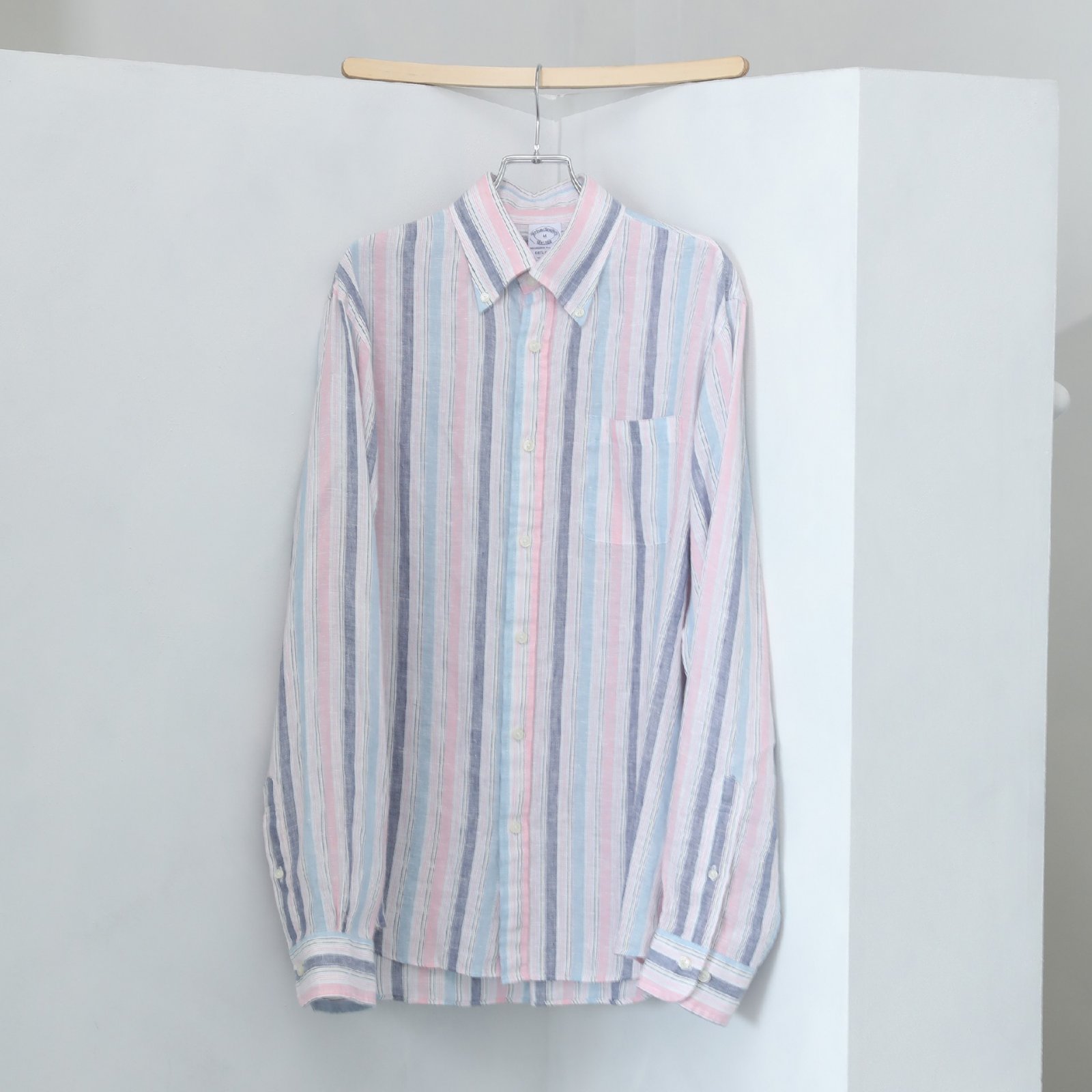 トラッドアイテムの代名詞であるボタンダウンシャツを、1912年創業の老舗生地メーカー、ベアードマクナット社のアイリッシュリネンで製作した。リネンの中でも最高級素材といわれ、光沢感と肌触りのよさが特徴だ。
