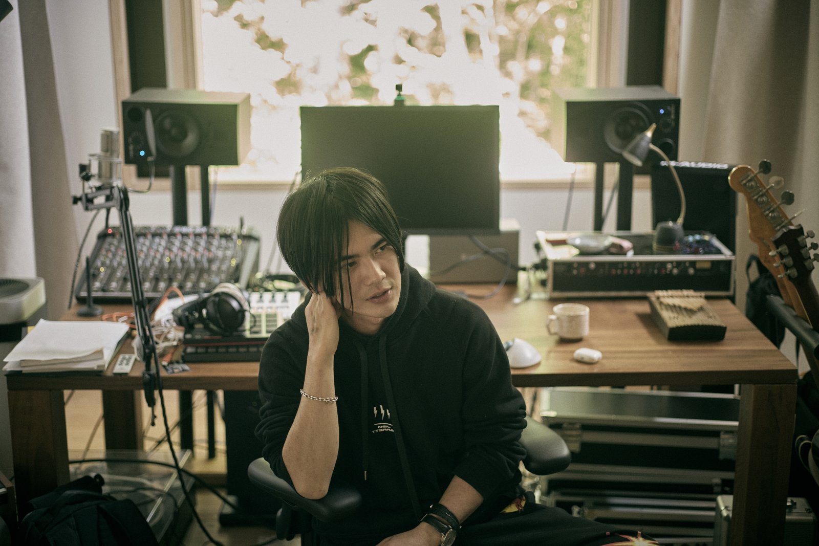自然の中にある自宅兼アトリエで、制作活動を営む。今後の活躍も目が離せない。最新シングル「Distant」