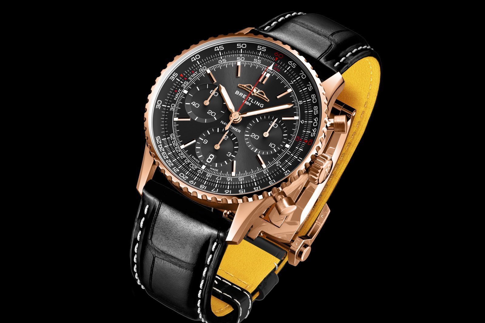 伝統のアイコニックなデザインを活かしながら意欲的な進化を遂げる、新世代「ナビタイマー」の新作。クラシックさと現代的なデザインを融合させたうえでクロノグラフを省き、回転計算尺の機能は維持して、しかも魅力的なGMT機能を付加した。