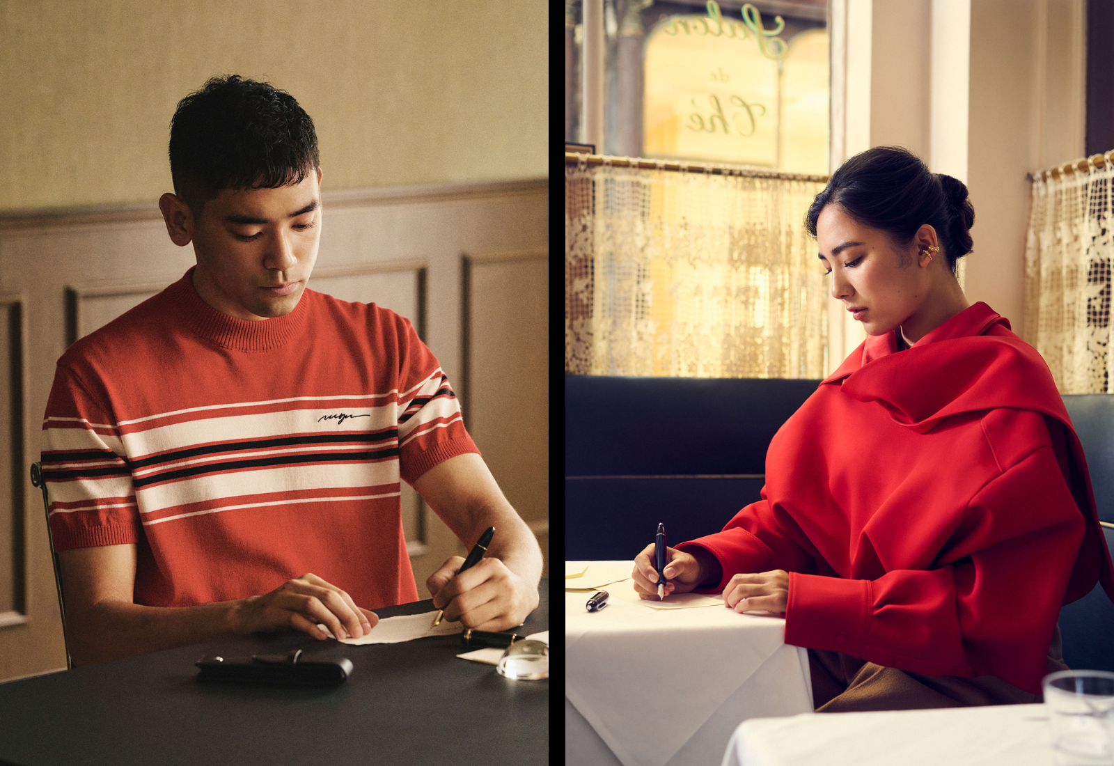 そんなふたりに東京とパリで、マイスターシュテュックを使ってメッセージを書いてもらった。久しぶりに日本語で手紙を書くというUTAは、「携帯やパソコンとは違い、手書きには相手との深いつながりを感じます。万年筆は力加減で文字の太さにバリエーションが出るのが面白い」と話す。一方、伽羅は「この万年筆は適度な重さがあって紙の上を滑るような気持ちよさがある。ペンを走らせる音も心地いい。こんなクラシックな筆記具を使いこなせる大人になりたいですね」と話す。書くことを通じて家族の思い出を共有するUTAと伽羅の手紙からは、深い絆が感じられる。