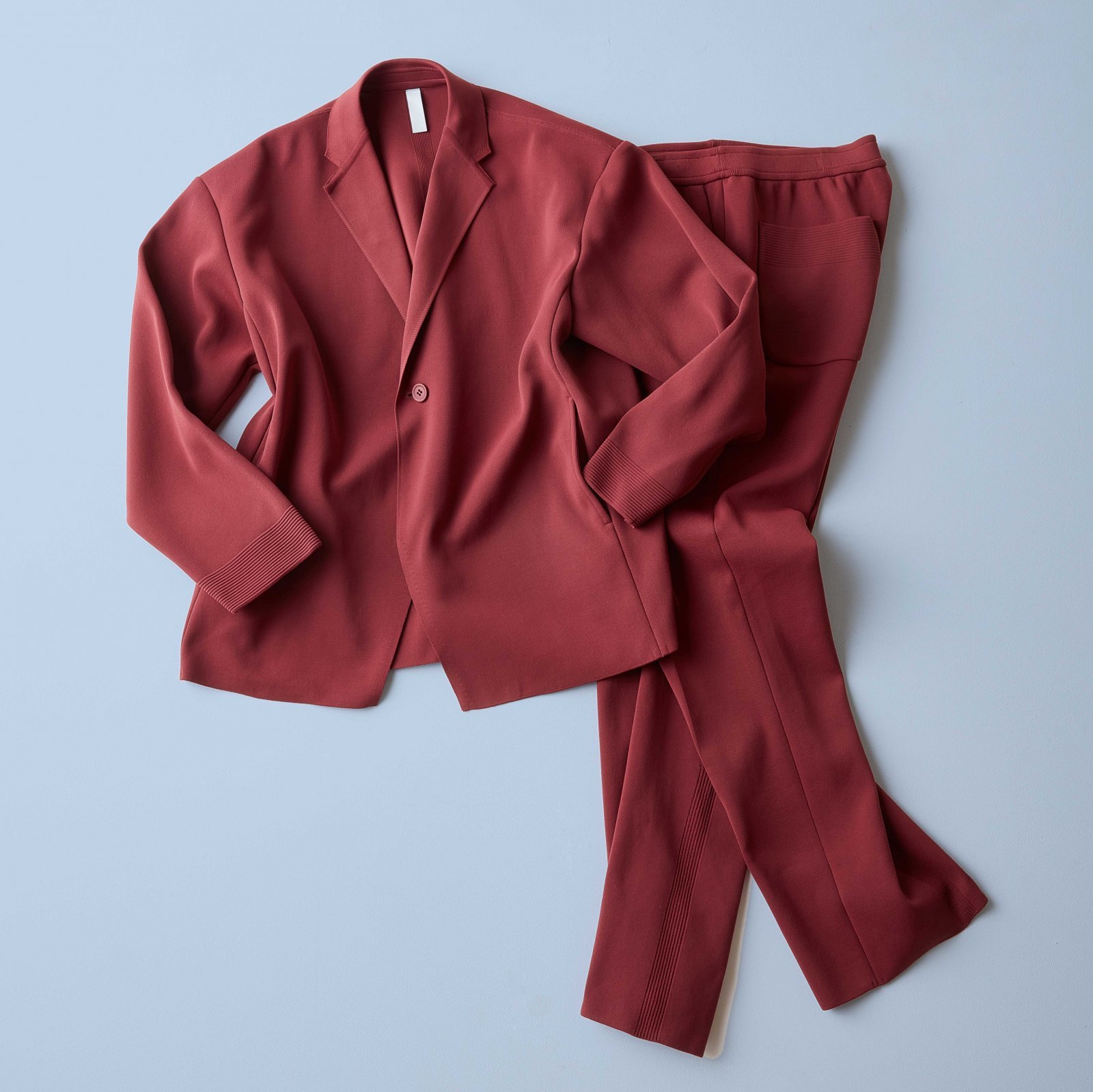 今回紹介する赤のセットアップスーツは、上下とも「ミラノリブ」と呼ばれるニット素材が使われて、ミニマムでシンプルさが際立つそのデザインが、ブランドが標榜するタイムレスさを物語っているが、坂本がこのスーツを見たら、どんな感想を持つだろうか。