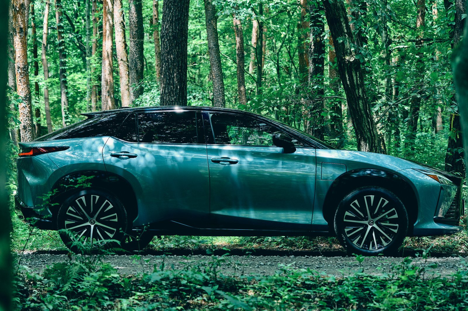 「軽井沢コモングラウンズ」をひと通り見学したら、いよいよレクサス初のBEV専用モデル「RZ」の試乗へ。今回はEton House Summer Campに参加した人を対象にした試乗会だったが、取材ということで特別に参加させてもらった。用意された「RZ450e」は、コンビのペイントが個性的な印象の一台。BEVというと近未来なデザインにふったものが多い印象だが、このクルマはこれまでのレクサスを踏襲した外観で、レクサスオーナーの乗り換えにも最適だろう。