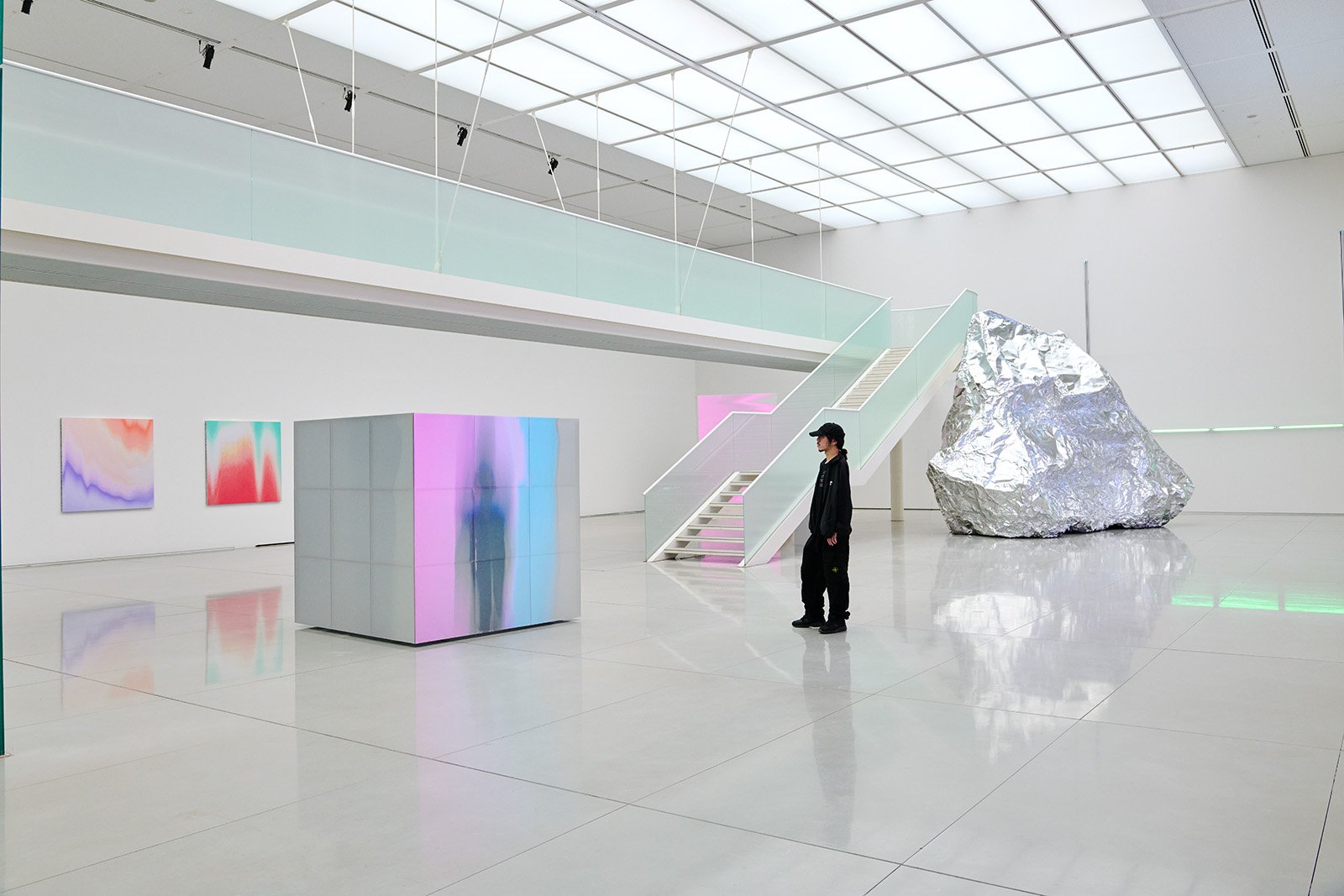 本展は、平面作品や立体作品、映像作品など約10点の独立した作品があり、さらに全体でもひとつの大型インスタレーション作品になっているのが特徴だ。観客は宇宙船のような美術館の中で、まるで映画『2001年宇宙の旅』のモノリスのように〝なにか〟を発する作品群と出合い、それぞれの内面に不思議な感動、〝センス・オブ・ワンダー〟を湧き上がらせる。そんな光景自体もヨシロットンの作品のようであり、それを目撃する我々自身も、その作品の一部となるのだろう。