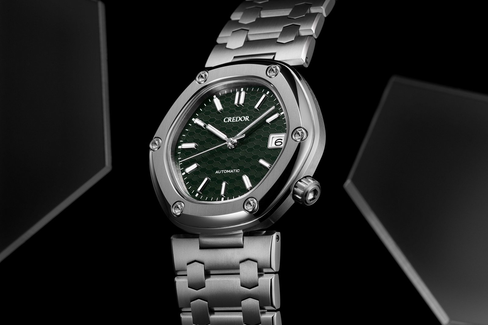多角形使いには天才的な冴えを見せたジェンタが「ロコモティブ」でフィーチャーしたのは、六角形の形象である。昨年の限定モデルから始まった新作では、オリジナルのデザインスケッチからジェンタの意図を抽出し、当時実現できなかった部分も含め、最新かつクレドール最高の技術を用いて具現化した。