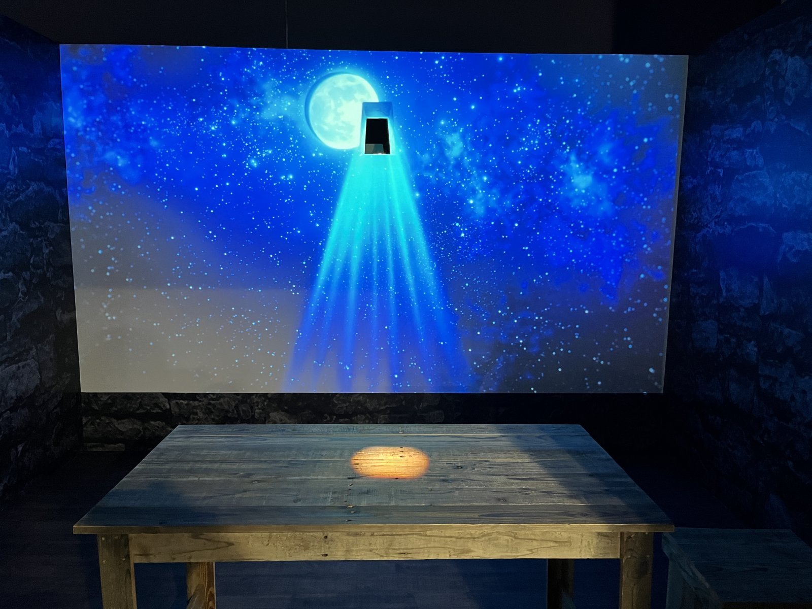 この展覧会はパネルを鑑賞するだけでなく、実際に体験できる参加型展示になっているのが特徴だ。地動説発明のきっかけとなった金星の満ち欠けをオグジーの視点になって体験できるほか、ラファウが手にしていた天体観測用機器アストロラーベに触れたり、地動説が普及する重要な役目を果たす活版印刷を体験できたりするコーナーなどを設置。『チ。』の時代背景を思い出しながら人々がどのように知を広めていったのかを追体験できる。