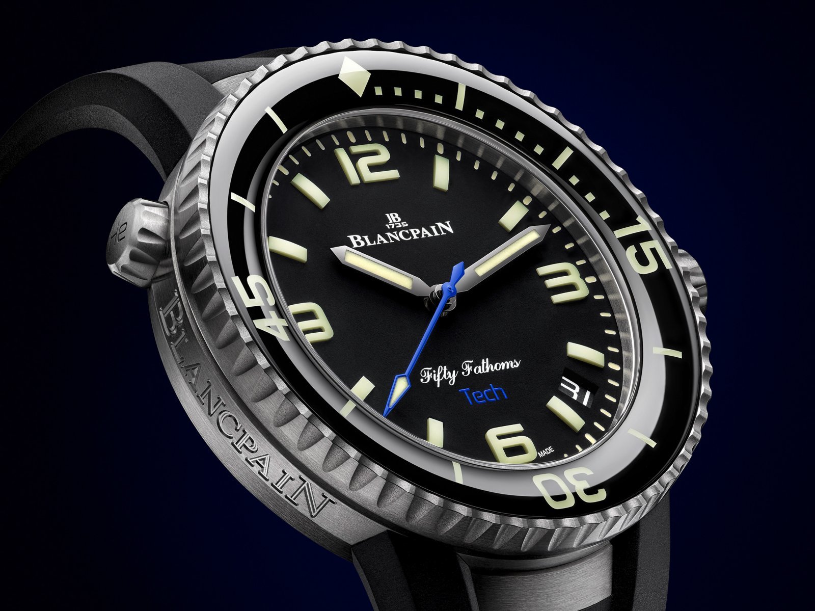 そのためフリーダイビングからスキューバ、(呼吸ガスを排出せず再利用する)リブリーザーへと技術は進化し、より長く、安全な潜水を実現してきた。ブランパンが「フィフティ ファゾムス」70周年を記念し、2023年に発表した「フィフティ ファゾムス 70周年記念 ACT2 テック ゴンベッサ」はそのチャレンジを支える。