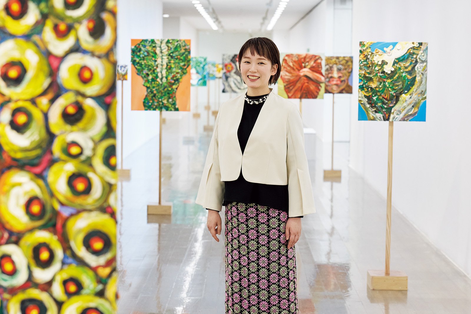 本展では、多肉植物であるサボテンとの交感を描いた新作を発表している。小さなサボテンの鉢を買い集めるうちに、その健気な姿と不屈の生命力に自身の苦しみや喜びを重ねた経験がもとになったという。長い回廊ではユニークなかたちを持つさまざまなサボテンの絵が林立して鑑賞者を迎える。展覧会タイトルになった、本シリーズを象徴する大作『我が身をさいて、みた世界は』では擬人化されたサボテンが身をよじり顔を歪める。サボテンのように我が身をさいて生きようとする姿は近藤そのものだった。「今回の個展のために描いていた大作がなかなか完成しない時、このサボテンみたいに生き続ければ新しい表現に出会えるかもしれない、と思って踏ん張れました」と近藤は話す。