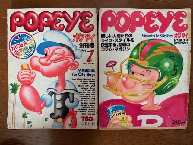 そのきっかけになった雑誌が手元にある。1976年の『POPEYE』の創刊号だ。本号はカリフォルニア特集で、その中に、当時アメリカで一般化し始めていた「ジョギング」を紹介する記事があり、現地取材でジョギング、バスケットボール、テニスなどのスポーツ用につくられた数々のスニーカーが9ページにわたって取り上げられている。コンバースやアディダス、プーマといった既知のブランドに加え、ナイキやブルックスといった新鋭のブランドも並ぶ。ほとんどが見たことも触れたこともないモデルで、ナイキ「レザー・コルテッツ」が28ドル95セント、ブルックス「ヴィラノヴァ」が23ドル、アディダス「カントリー」が27ドル95セントと記されている。