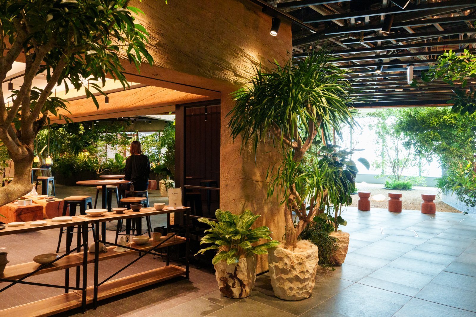 休憩所や中庭のようなところもある、青々とした植物で満たされたボタニカルフロア。