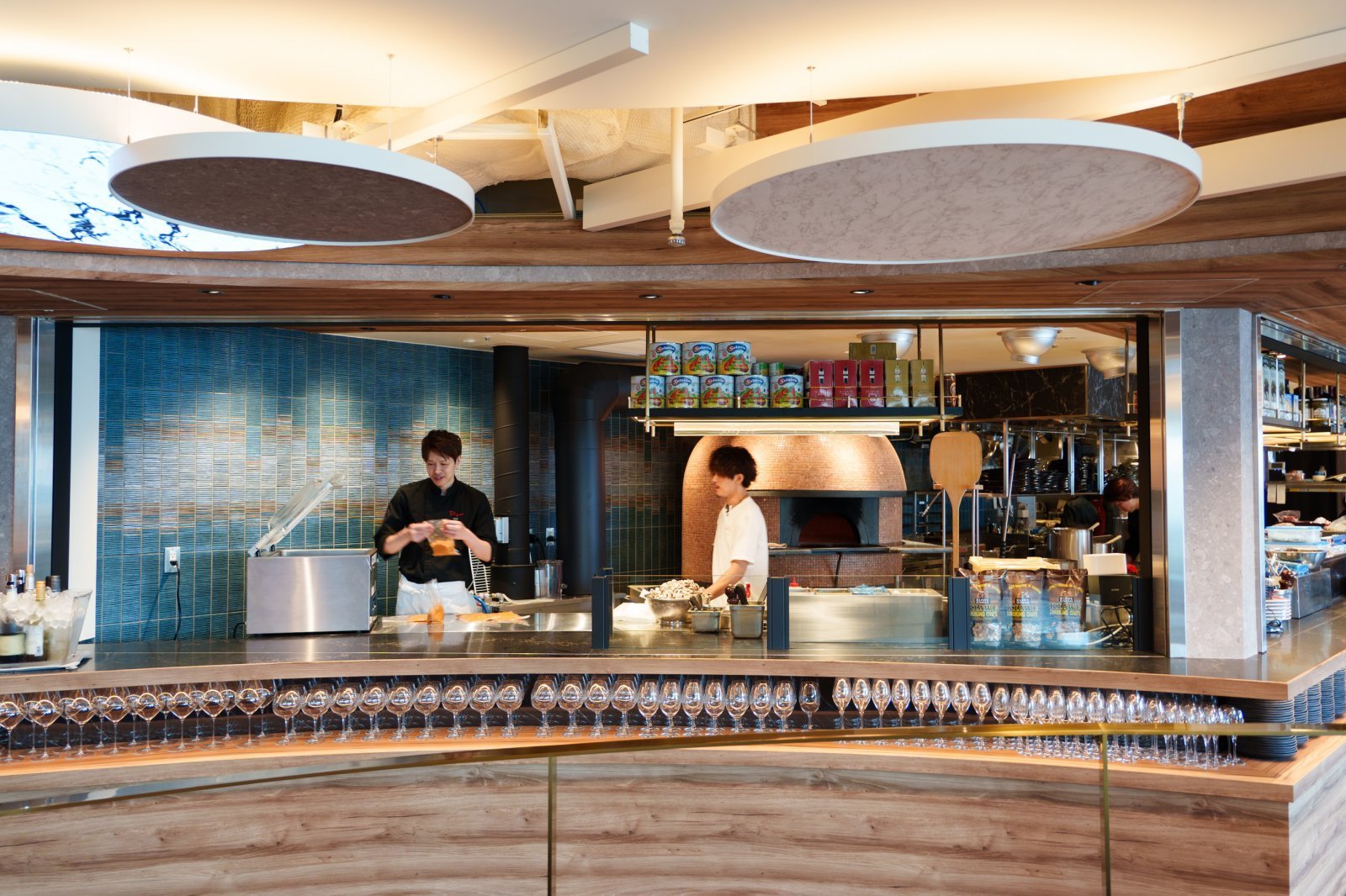 広〜い「リゴ スパニッシュ イタリアン」はカフェスペースの奥に直結。