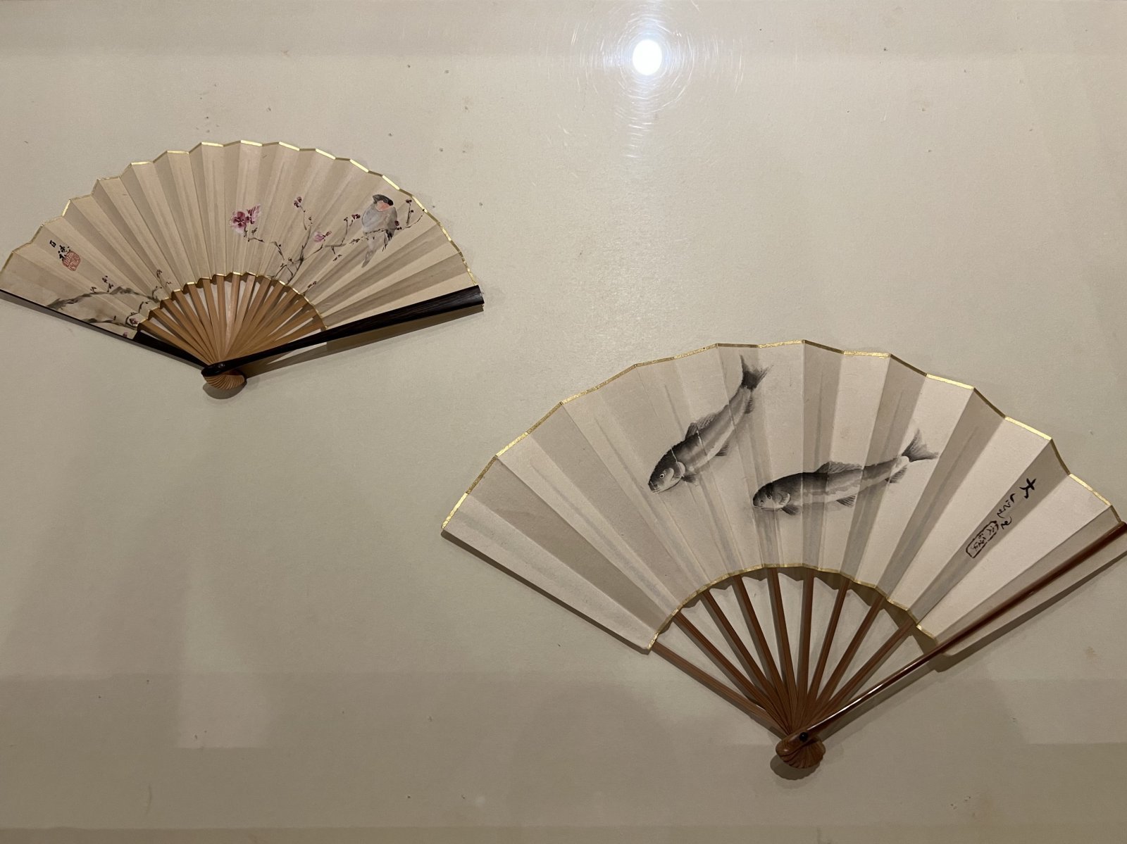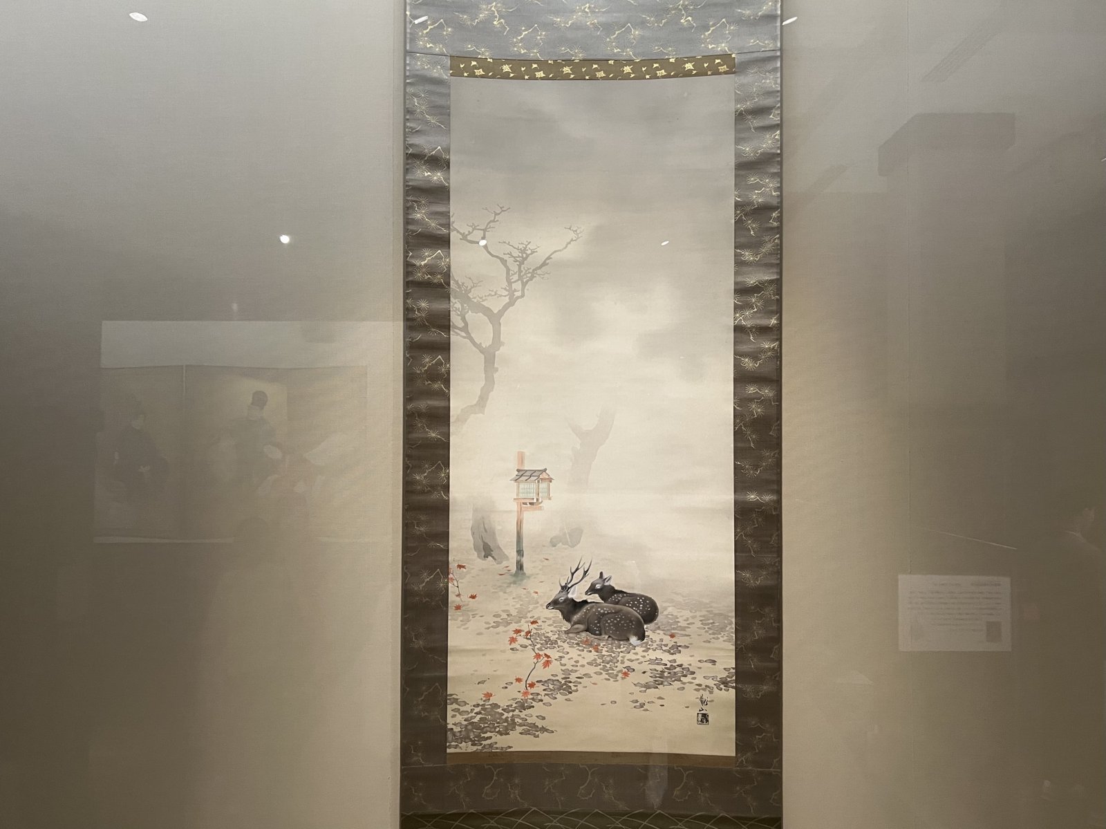 この護立がコレクションした近代日本画にも見逃せない作品が少なくない。大観の『柿紅葉』とは、琳派への傾倒も感じられる色鮮やかな屏風作品。右隻には竹と赤松が並び、2羽の鶉が左隻に広がる柿紅葉へと視線を誘っている。また大観や観山、それに小林古径などによる小襖や扇といった暮らしを彩る品々にも目を向けたい。小襖は護立の自邸、もしくは別荘用に制作されたもので、扇も多くが護立による注文作であると見られている。