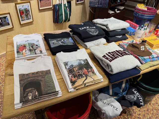 そんな縁から、今回、SHIPSと『TAKE IVY』のコラボレーションが実現したのだが、『TAKE IVY』の写真をそのままプリントした「メッセージ フォトTシャツ」以外にも、「TAKE IVY」をカレッジロゴ風にアレンジしたスウェットシャツ、トートバッグ、ベースボールキャップ、バンダナなど、多彩なアイテムが揃う。