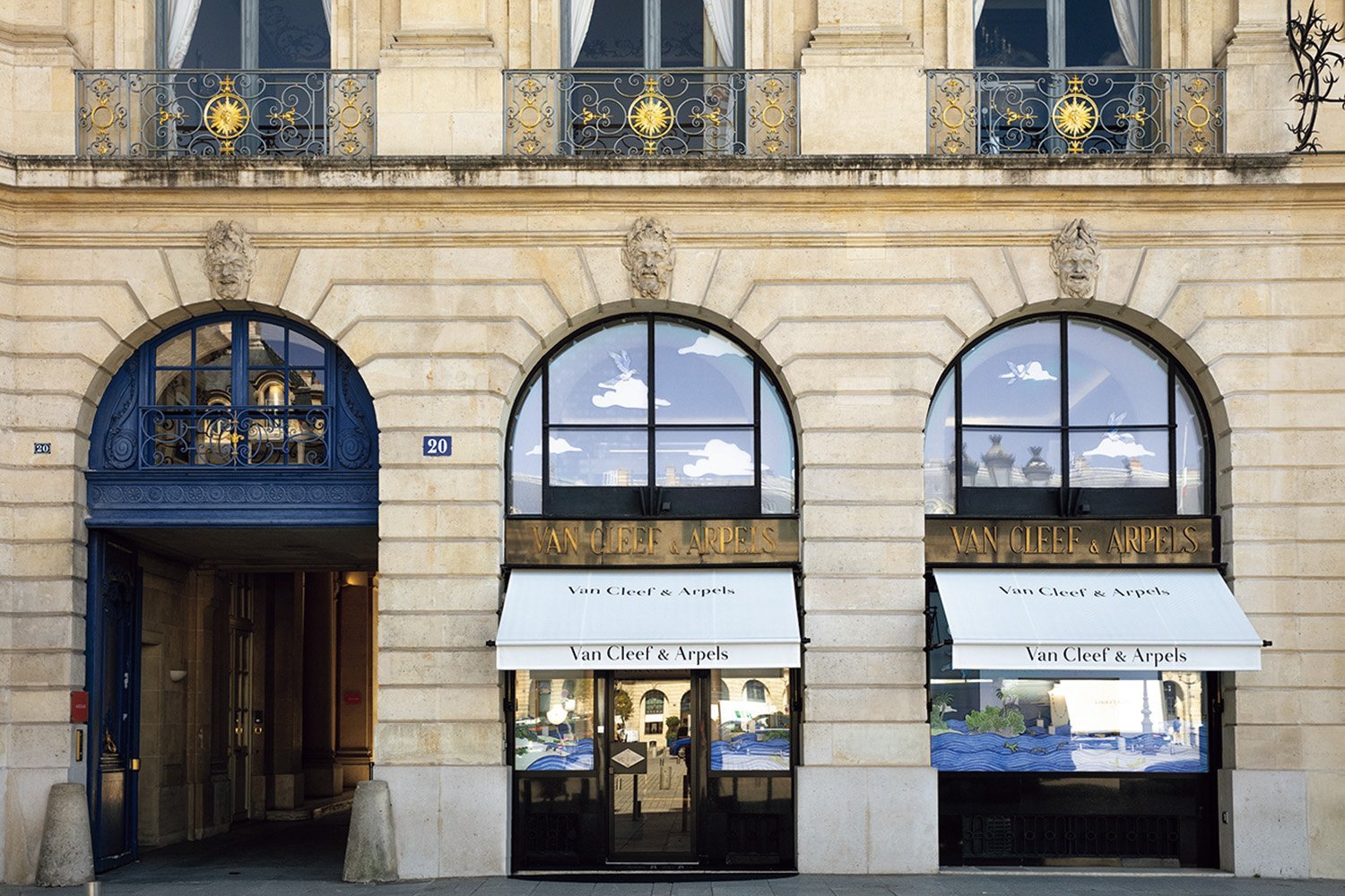 ヴァン クリーフ&アーペルのブティックがあるヴァンドーム広場は、太陽王ルイ14世の命により18世紀初頭に建設され、パリの洗練と美の文化の象徴として知られる。長方形の角を落とした八角形の広場には、グランサンクとたたえられたパリの高級宝飾店が軒を連ね、ヴァン クリーフ&アーペルもそのひとつに数えられた。