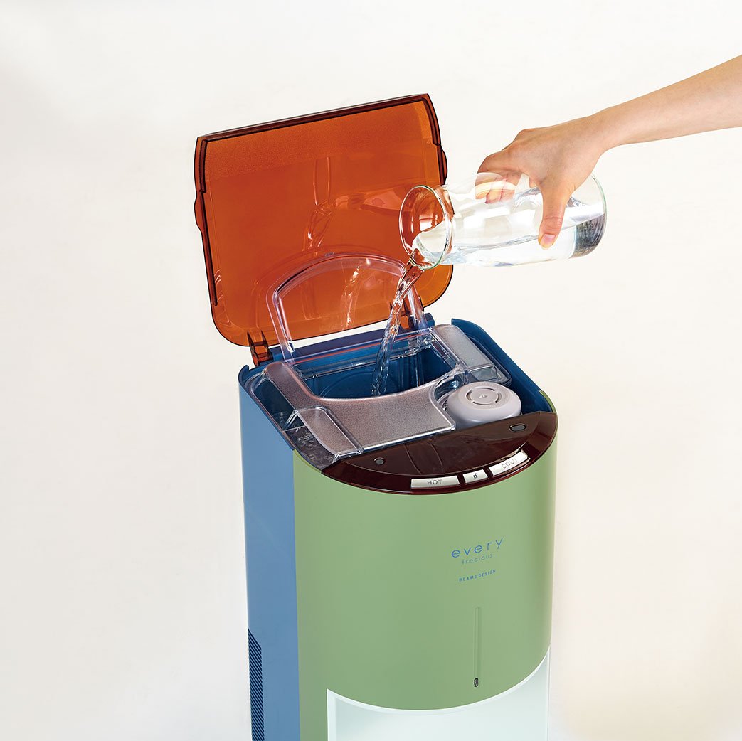 天然水の製造・販売を手掛ける富士山GXホールディングスが展開する、浄水型のウォーターサーバーが「エブリィフレシャス」だ。浄水器とウォーターサーバーの2役を担う〝スぺパ家電〟として人気を博し、2021年には卓上型の「エブリィフレシャス・ミニ」が誕生。そしてこの夏、登場したのがビームスデザインがプロデュースした特別モデルだ。