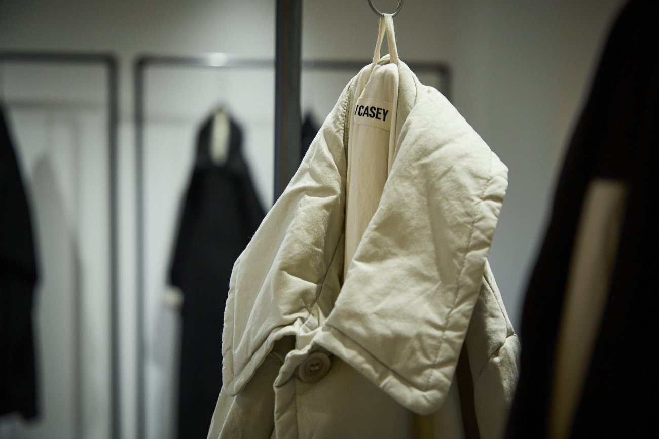 ケイシーケイシーでは過去の人気アイテムをそのまま再生産することはほとんどない。ジャケットやコート、シャツなど、一見変わらないように見える服も、毎シーズン少しずつ進化している。愛用者が着るたびに新しさを感じるのはそのためだ。