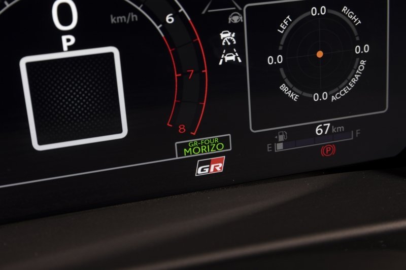 今回、モリゾウとともに専用の四駆制御モードを開発し、ベース車に備わる「GRAVEL」モードと置き換える形で「MORIZO」モードを備える。「ニュルブルクリンク24時間耐久レース」を安心して走り切るための最適なイニシャルトルクと駆動力配分となる前50:後50の設定となる。