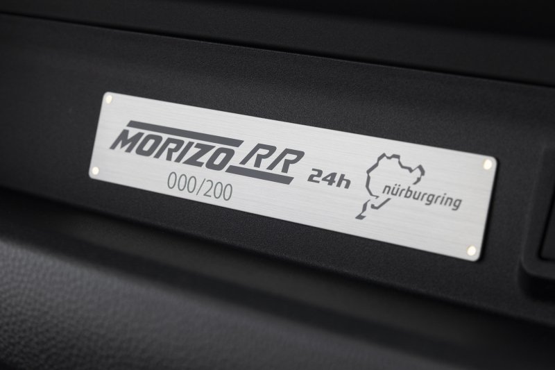 スエード表皮を使ったステアリングホイールも専用装備となり、モータースポーツにおける操作性を追求。外径を一回り小さくし、パドルシフトやステアリングスイッチの形状も変更だ。インテリアには、「MORIZO RR」ロゴを施した専用シリアルナンバープレートを装着している。