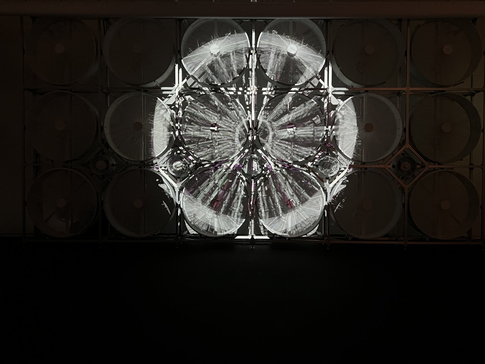 やがて円は核の力を象徴するかのように高速で回転し、スクリーンが巻き上がると背後に隠された産業用送風機が現れる。送風機が起動し、重低音とともに強い風が吹き抜ける瞬間、会場は異様なまでの緊張と計り知れない喪失の気配に包まれる。しかしそれは爆風の再現ではない。ジャーは「広島が求める平和の風を表現している」と語り、破壊の記憶から未来への希望をそっと浮かび上がらせている。