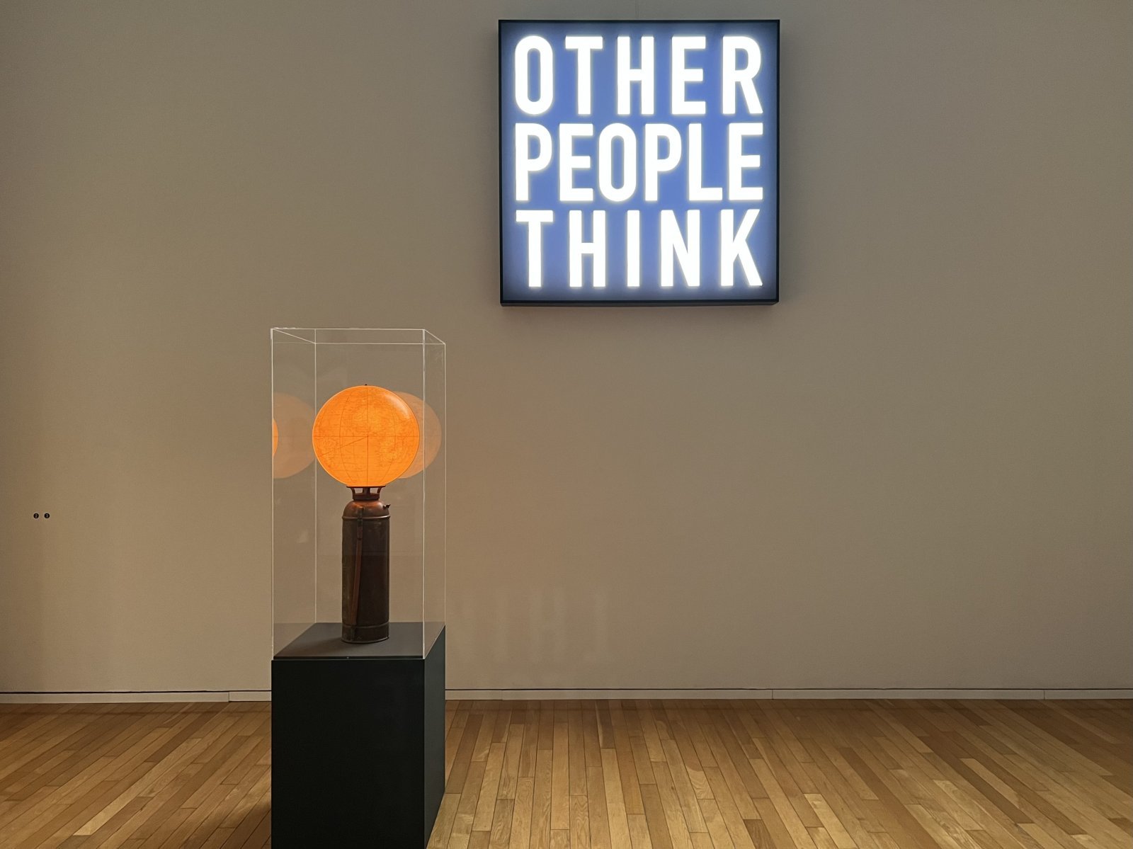 国境と認識をめぐる『アメリカのためのロゴ』とは、1987年にニューヨークのタイムズ・スクエアで上映された電子ビルボート作品に基づくもの。アメリカ合衆国の地図や「THIS IS NOT AMERICA(これはアメリカでない)」などの文字が現れ、やがて「AMERICA」と記された大陸全体の輪郭へと変化していく。そこに「アメリカという言葉は合衆国一国を指すものではなく、南北アメリカ大陸全体を意味している」というジャーのメッセージが垣間見える。