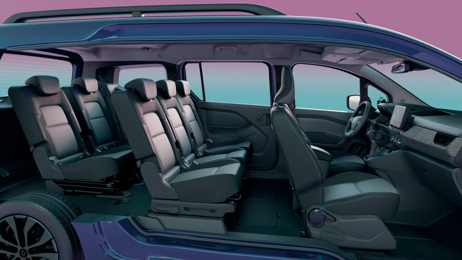 2列目、3列目のシートはスライド、折り畳み、跳ね上げ、取り外しが可能で、シートアレンジのバリエーションは1024通りに。また、「ルノー カングー」のアイコンにもなっている両開きタイプのダブルバックドアとブラックバンパーも採用している。