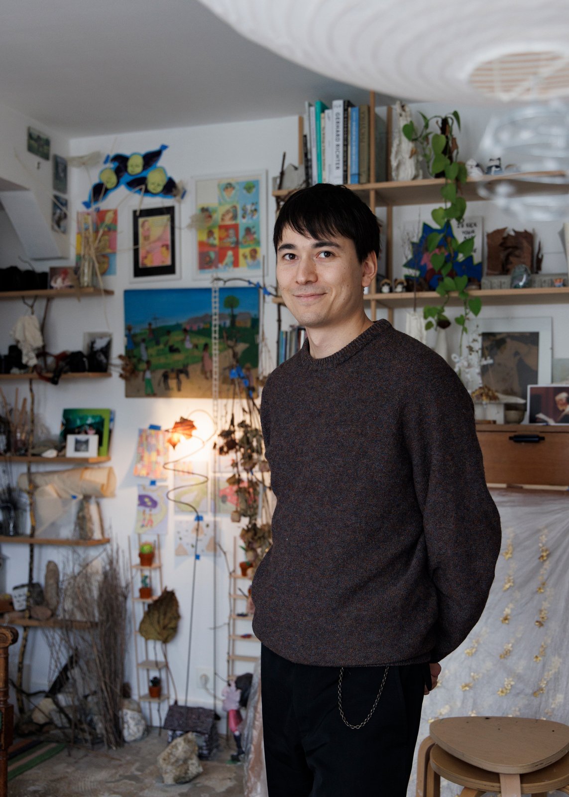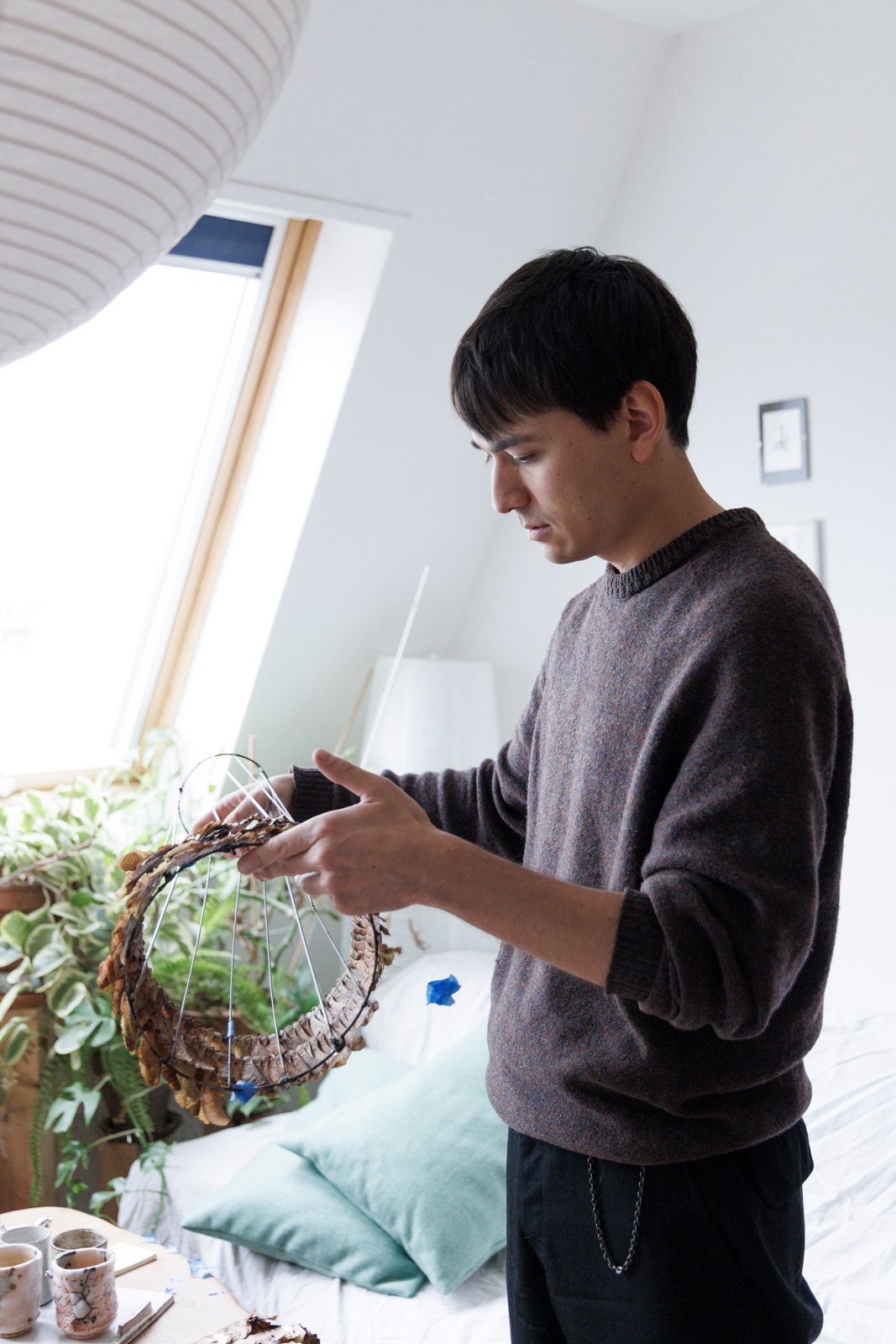 落ち葉や枝木などの拾い集めた〝自然〟を用いて、椅子やベッド、照明器具をつくるフランス人建築家のトーマス・タカダ。2025年夏に南フランスで開催されたデザインフェスティバル「デザイン パレード トゥーロン」で作品を発表し、スポンサーのシャネルとヴァン クリーフ&アーペルからアワードを受賞した。