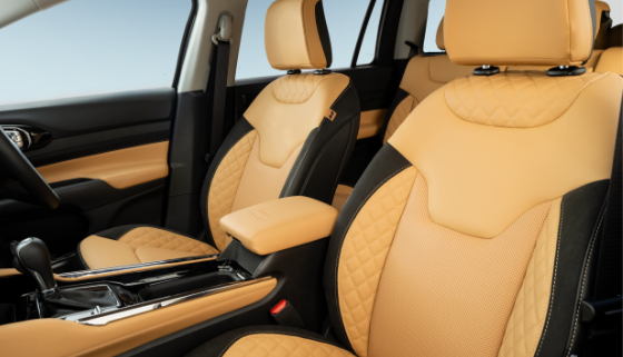 「ジープ コマンダー トラックエディション」では、ブラックスエード調のインストルメントボルスターを採用。シートデザインは、ジープのフラッグシップモデルである「グランドチェロキーLサミット リザーブ」を彷彿とさせる、クラスを超えた上質な仕上がりに。