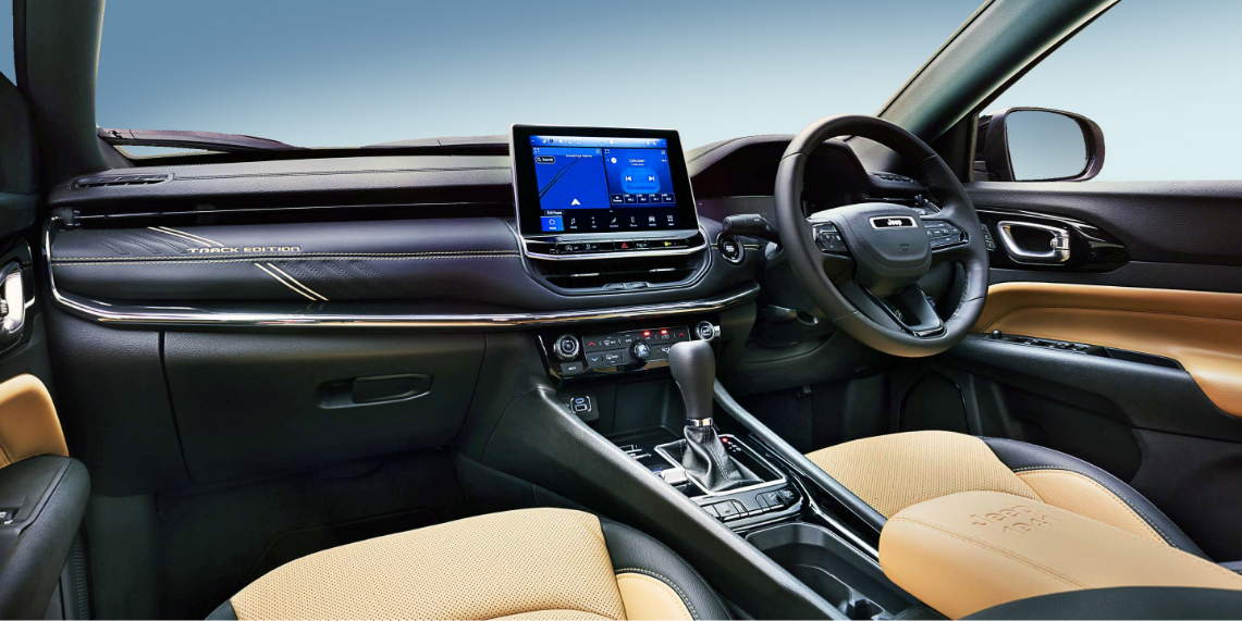「ジープ コンパス トラックエディション」には、ブラックペイントルーフを採用。フロントシートにはベンチレーション機能が搭載され、季節を問わない快適なドライビング環境を提供する。