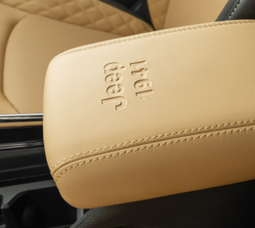 インテリアは、本限定車専用色のテュペロブラウンとブラックのコントラストが上質な空間を演出。センターコンソールにはジープ誕生の年“1941”が刻まれ、ブランド85周年に通じるディテールが取り入れられている。