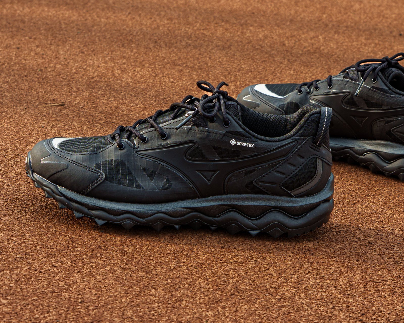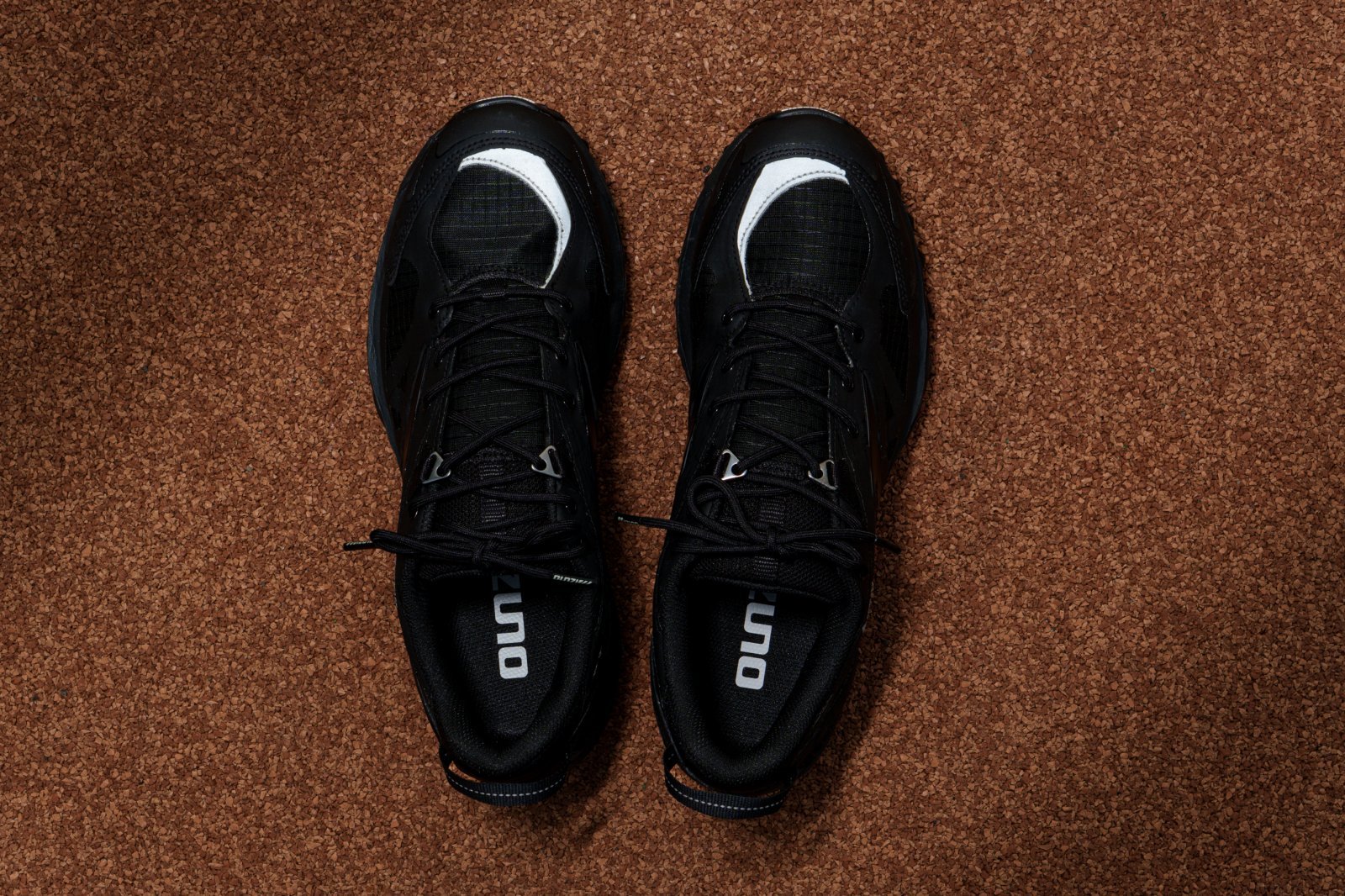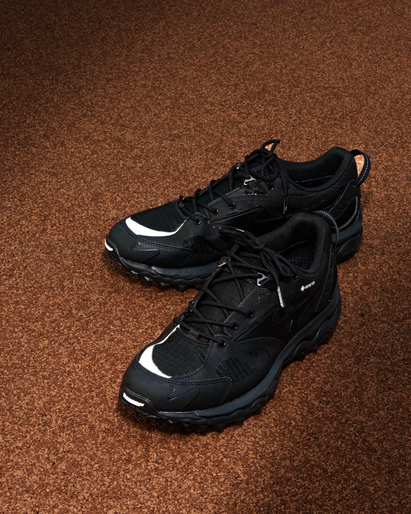 複雑にパーツを配したアッパーは2,000年代(Y2K)のアーカイブ。クッション力のある波形ソールは現代のミズノが誇るテクニカルなアイコンソール。このふたつをハイブリッドに組み合わせ、さらにゴアテックスを搭載した全天候型スニーカーが「WAVE MUJIN TL GTX」である。いまファッションシーンで勢いを増すミズノのラインナップのなかでも、ベーシックな服装や古着などと組ませやすい大人向けモデルだ。黒が直営店(公式オンラインストア含む)限定カラーという希少性も大人心をくすぐる。
