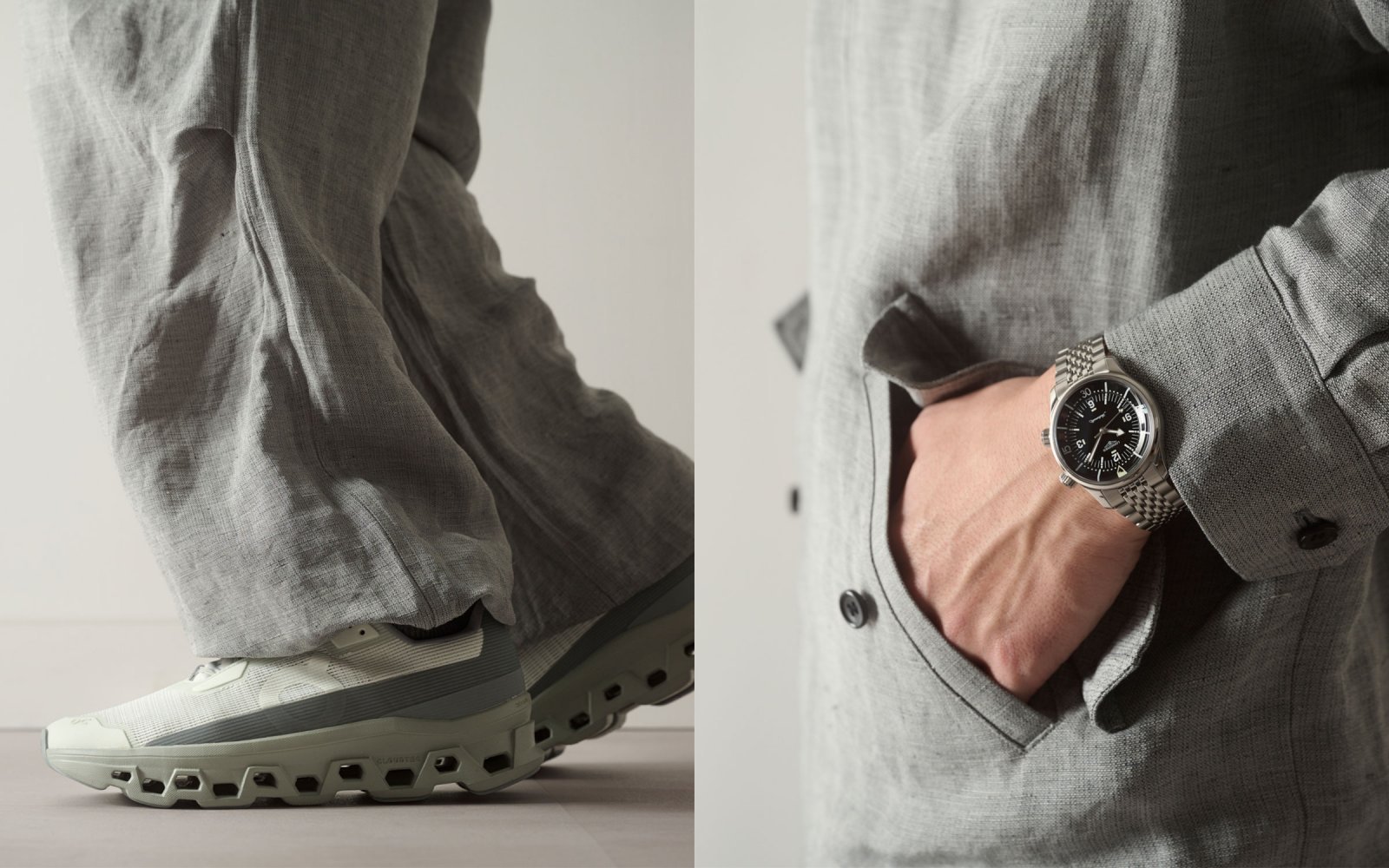 このふたつをつなぐのは、「極限のスペックを日常の美学で包み込む」というスイス・デザインの矜持だ。長距離を走り抜く最先端のハイテクソールと、深海300mに潜るレトロな防水構造。誕生した時代はまったく異なる両者だが、本来であれば主張が強くなるはずのプロユースの機能を、オンは緻密な素材使いとカラーリングで、ロンジンは内転式ベゼルという構造的アプローチで、それぞれエレガントに隠し持っている。グレートーンの最先端スニーカーに、クラシックなブラックダイヤルのダイバーズを合わせる。それは、内に秘めた圧倒的なポテンシャルをひけらかさない、本質を知る人のためのスタイルである。